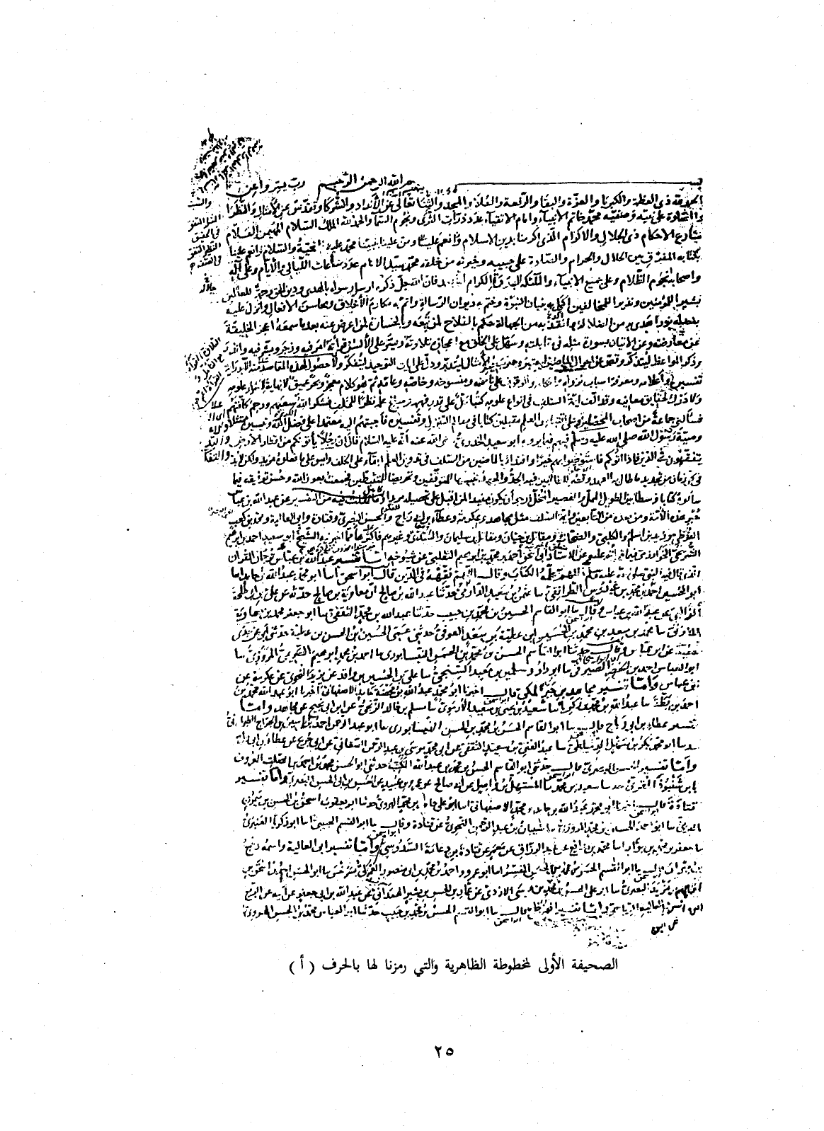 الصحيفة الأولى لمخطوطة الظاهرية والتي رمزنا لها بالحرف (أ)