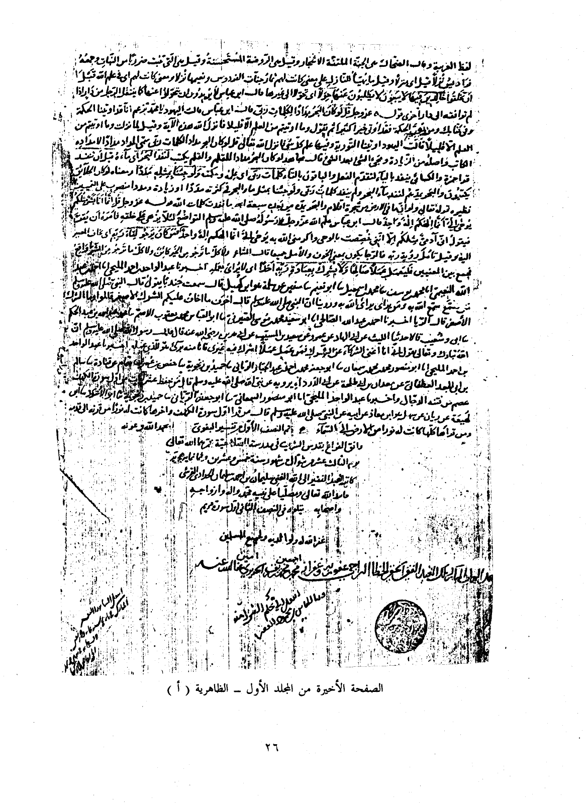 الصفحة الأخيرة من المجلد الأول - الظاهرية (أ)