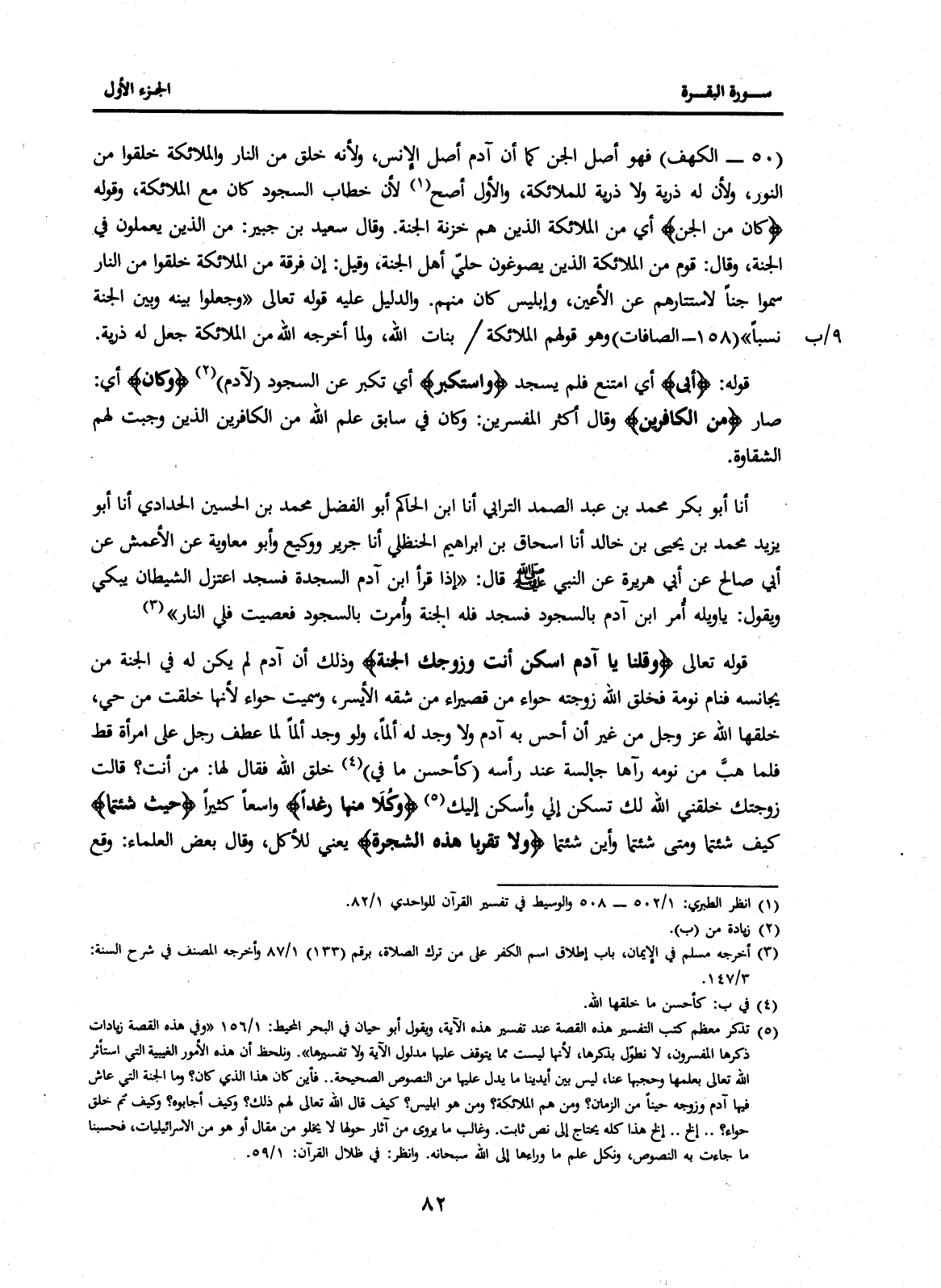 (1) انظر الطبري: 1 / 502-508 والوسيط في تفسير القرآن للواحدي 1 / 82.