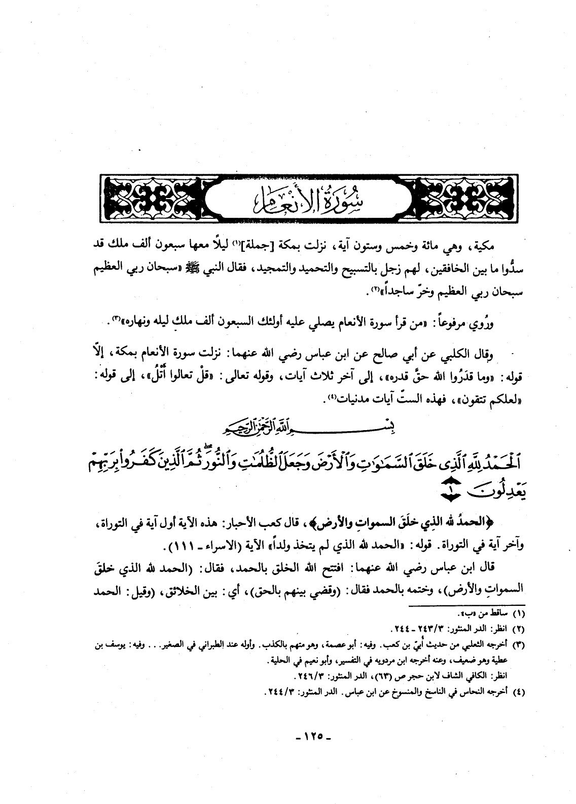 {الْحَمْدُ لِلَّهِ الَّذِي خَلَقَ السَّمَاوَاتِ وَالْأَرْضَ وَجَعَلَ الظُّلُمَاتِ وَالنُّورَ ثُمَّ الَّذِينَ كَفَرُوا بِرَبِّهِمْ يَعْدِلُونَ (1) }