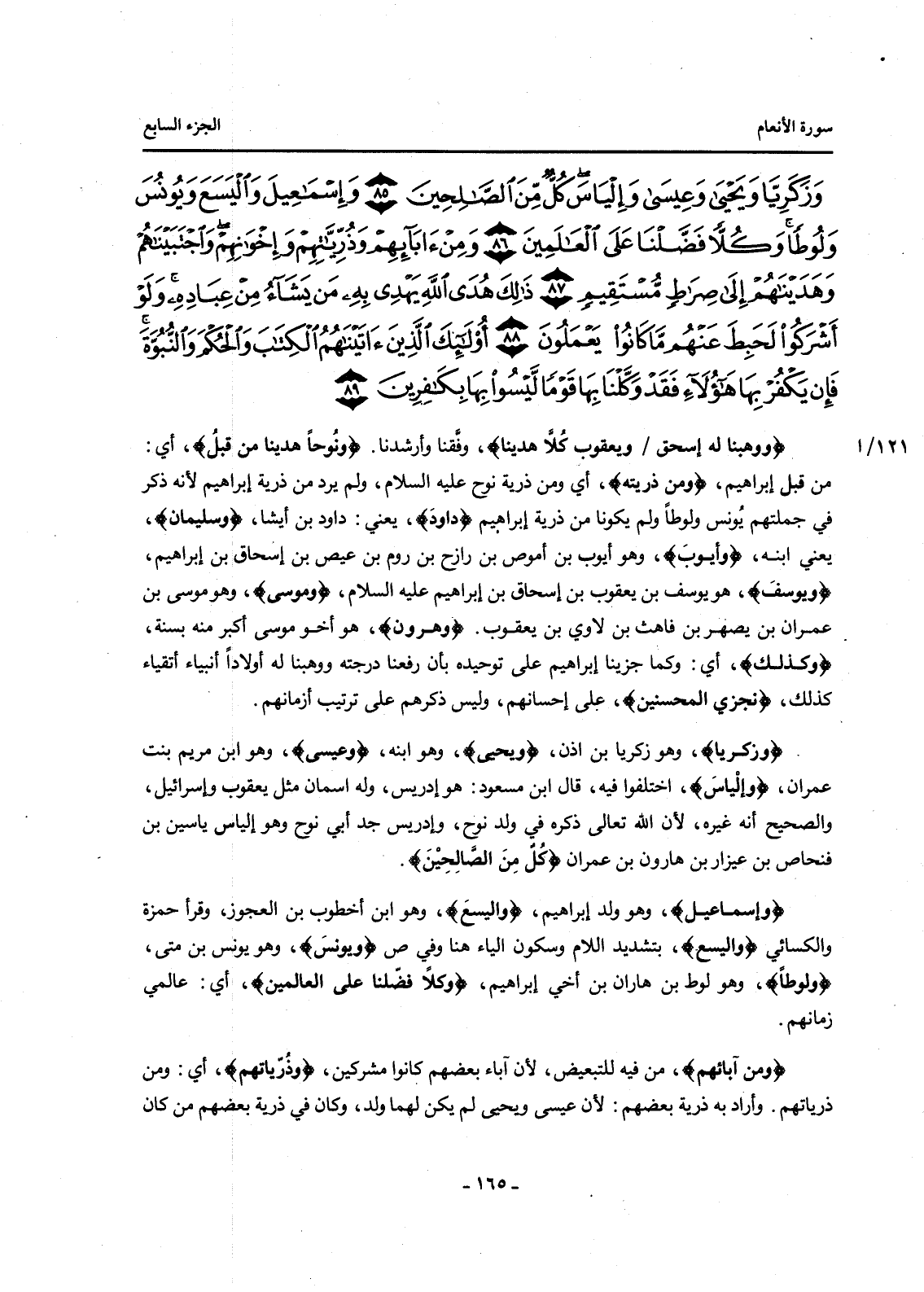 {وَزَكَرِيَّا وَيَحْيَى وَعِيسَى وَإِلْيَاسَ كُلٌّ مِنَ الصَّالِحِينَ (85) وَإِسْمَاعِيلَ وَالْيَسَعَ وَيُونُسَ وَلُوطًا وَكُلًّا فَضَّلْنَا عَلَى الْعَالَمِينَ (86) وَمِنْ آبَائِهِمْ وَذُرِّيَّاتِهِمْ وَإِخْوَانِهِمْ وَاجْتَبَيْنَاهُمْ وَهَدَيْنَاهُمْ إِلَى صِرَاطٍ مُسْتَقِيمٍ (87) ذَلِكَ هُدَى اللَّهِ يَهْدِي بِهِ مَنْ يَشَاءُ مِنْ عِبَادِهِ وَلَوْ أَشْرَكُوا لَحَبِطَ عَنْهُمْ مَا كَانُوا يَعْمَلُونَ (88) أُولَئِكَ الَّذِينَ آتَيْنَاهُمُ الْكِتَابَ وَالْحُكْمَ وَالنُّبُوَّةَ فَإِنْ يَكْفُرْ بِهَا هَؤُلَاءِ فَقَدْ وَكَّلْنَا بِهَا قَوْمًا لَيْسُوا بِهَا بِكَافِرِينَ (89) }