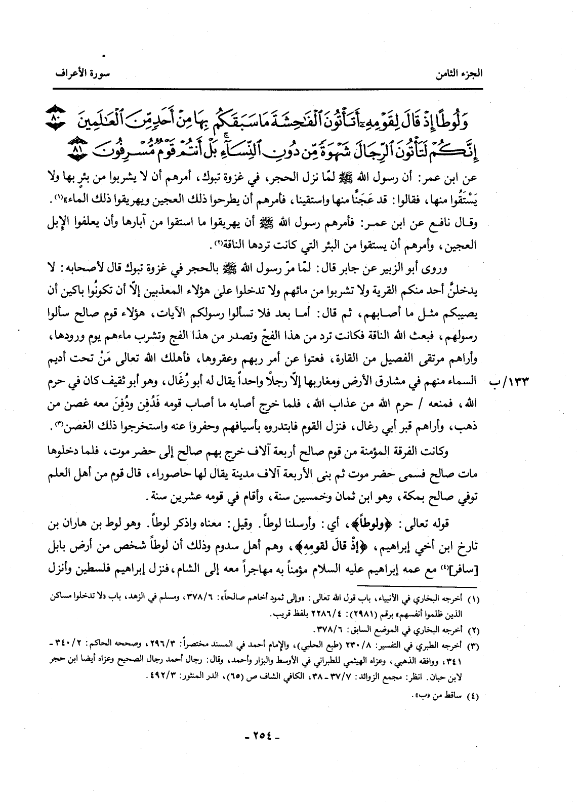(1) أخرجه البخاري في الأنبياء، باب قول الله تعالى: "وإلى ثمود أخاهم صالحا": 6 / 378، ومسلم في الزهد، باب "لا تدخلوا مساكن الذين ظلموا أنفسهم" برقم (2981) : 4 / 2286 بلفظ قريب.