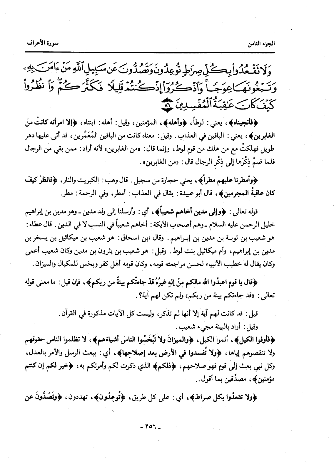 {وَلَا تَقْعُدُوا بِكُلِّ صِرَاطٍ تُوعِدُونَ وَتَصُدُّونَ عَنْ سَبِيلِ اللَّهِ مَنْ آمَنَ بِهِ وَتَبْغُونَهَا عِوَجًا وَاذْكُرُوا إِذْ كُنْتُمْ قَلِيلًا فَكَثَّرَكُمْ وَانْظُرُوا كَيْفَ كَانَ عَاقِبَةُ الْمُفْسِدِينَ (86) }