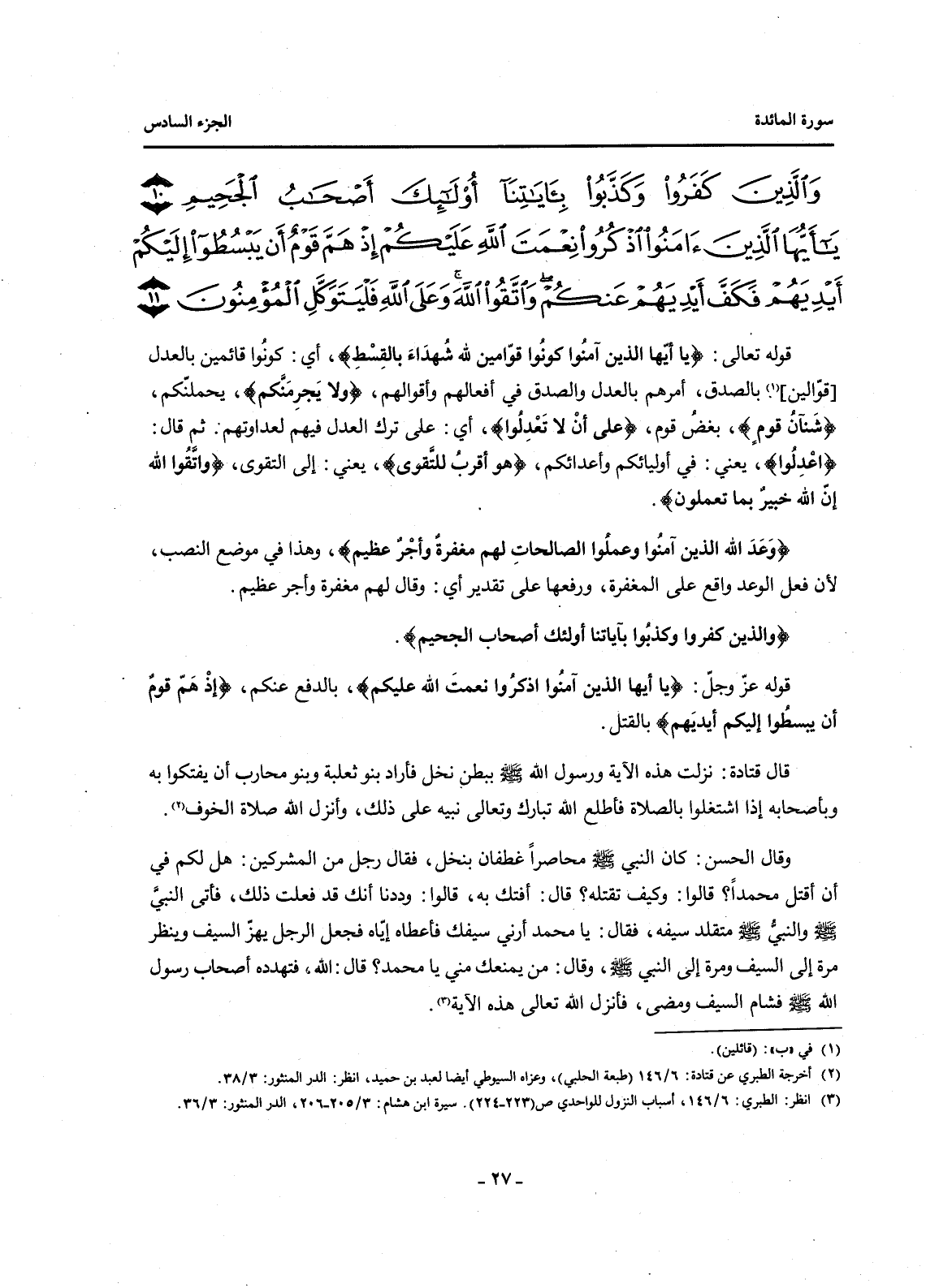 (2) انظر: الطبري: 6 / 146، أسباب النزول للواحدي ص (223-224) . سيرة ابن هشام: 3 / 205-206، الدر المنثور: 3 / 36.