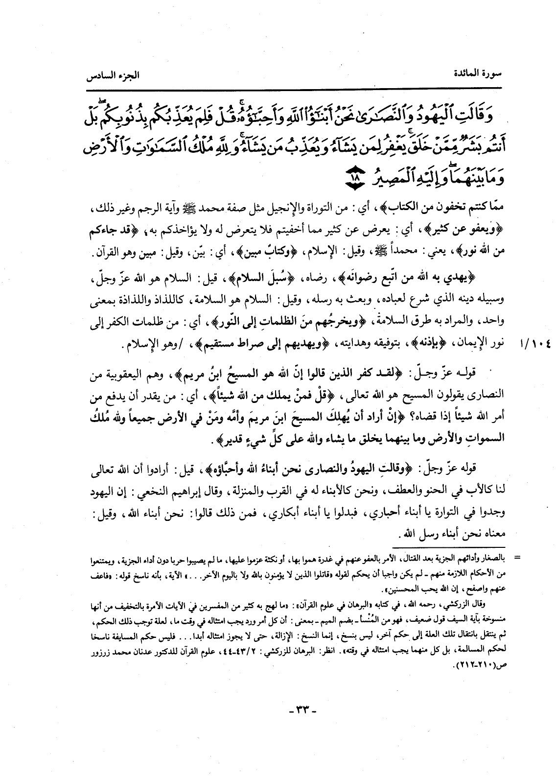 {وَقَالَتِ الْيَهُودُ وَالنَّصَارَى نَحْنُ أَبْنَاءُ اللَّهِ وَأَحِبَّاؤُهُ قُلْ فَلِمَ يُعَذِّبُكُمْ بِذُنُوبِكُمْ بَلْ أَنْتُمْ بَشَرٌ مِمَّنْ خَلَقَ يَغْفِرُ لِمَنْ يَشَاءُ وَيُعَذِّبُ مَنْ يَشَاءُ وَلِلَّهِ مُلْكُ السَّمَاوَاتِ وَالْأَرْضِ وَمَا بَيْنَهُمَا وَإِلَيْهِ الْمَصِيرُ (18) }