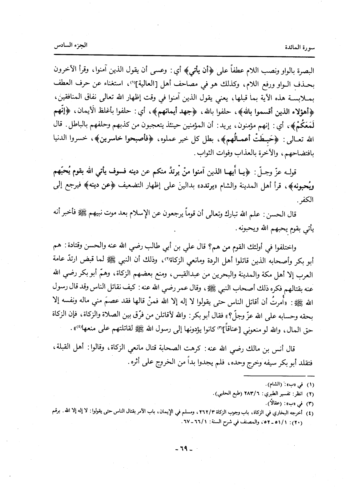 (4) أخرجه البخاري في الزكاة، باب وجوب الزكاة 3 / 262، ومسلم في الإيمان، باب الأمر بقتال الناس حتى يقولوا: لا إله إلا الله. برقم (20) : 1 / 51-52، والمصنف في شرح السنة: 1 / 66-67.