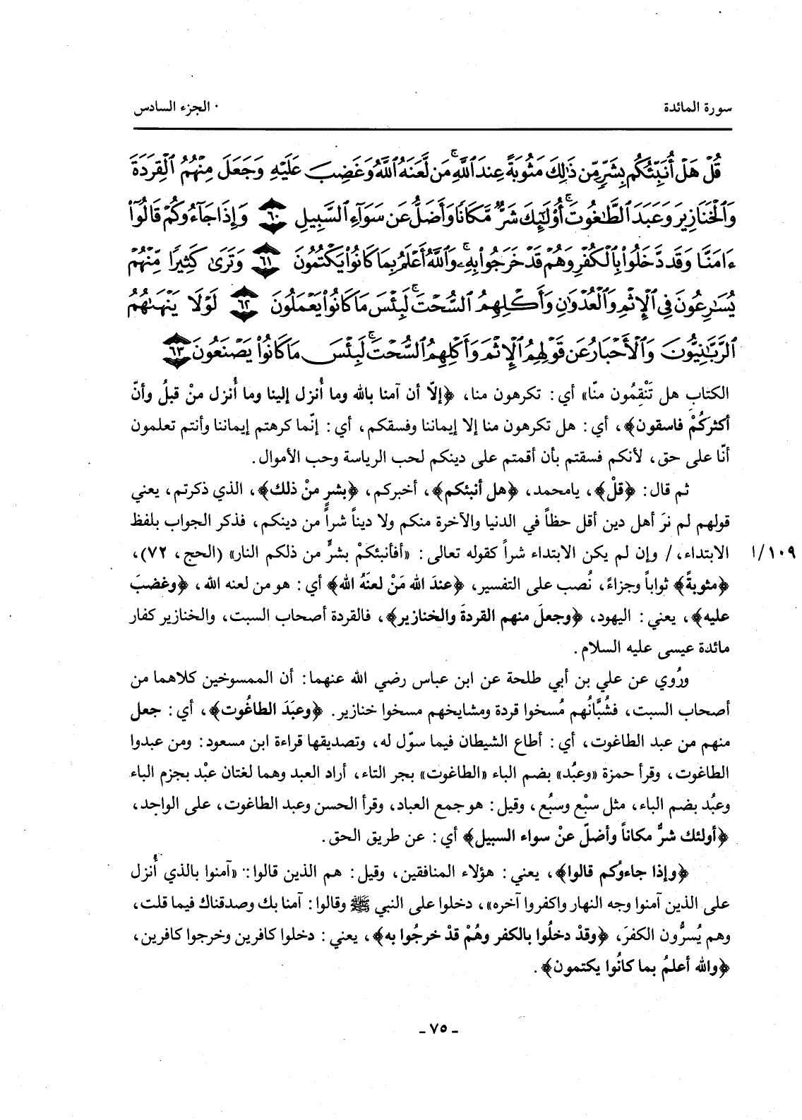 {قُلْ هَلْ أُنَبِّئُكُمْ بِشَرٍّ مِنْ ذَلِكَ مَثُوبَةً عِنْدَ اللَّهِ مَنْ لَعَنَهُ اللَّهُ وَغَضِبَ عَلَيْهِ وَجَعَلَ مِنْهُمُ الْقِرَدَةَ وَالْخَنَازِيرَ وَعَبَدَ الطَّاغُوتَ أُولَئِكَ شَرٌّ مَكَانًا وَأَضَلُّ عَنْ سَوَاءِ السَّبِيلِ (60) وَإِذَا جَاءُوكُمْ قَالُوا آمَنَّا وَقَدْ دَخَلُوا بِالْكُفْرِ وَهُمْ قَدْ خَرَجُوا بِهِ وَاللَّهُ أَعْلَمُ بِمَا كَانُوا يَكْتُمُونَ (61) وَتَرَى كَثِيرًا مِنْهُمْ يُسَارِعُونَ فِي الْإِثْمِ وَالْعُدْوَانِ وَأَكْلِهِمُ السُّحْتَ لَبِئْسَ مَا كَانُوا يَعْمَلُونَ (62) لَوْلَا يَنْهَاهُمُ الرَّبَّانِيُّونَ وَالْأَحْبَارُ عَنْ قَوْلِهِمُ الْإِثْمَ وَأَكْلِهِمُ السُّحْتَ لَبِئْسَ مَا كَانُوا يَصْنَعُونَ (63) }