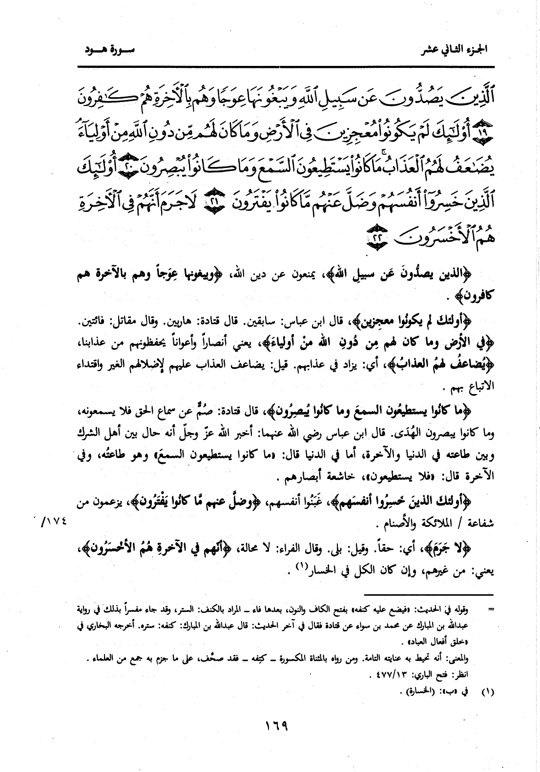 {الَّذِينَ يَصُدُّونَ عَنْ سَبِيلِ اللَّهِ وَيَبْغُونَهَا عِوَجًا وَهُمْ بِالْآخِرَةِ هُمْ كَافِرُونَ (19) } .