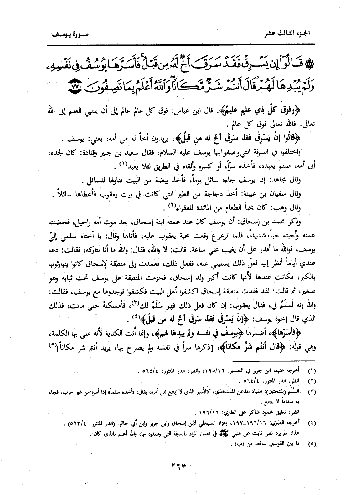 (4) أخرجه الطبري: 16 / 196-197 وعزاه السيوطي لابن إسحاق وابن جرير وابن حاتم. (الدر المنثور: 4 / 563) . هذا، ولم يرد نص ثابت عن النبي صَلَّى اللَّهُ عَلَيْهِ وَسَلَّمَ في تعيين المراد بالسرقة التي وصفوه بها، والله أعلم بالذي كان.