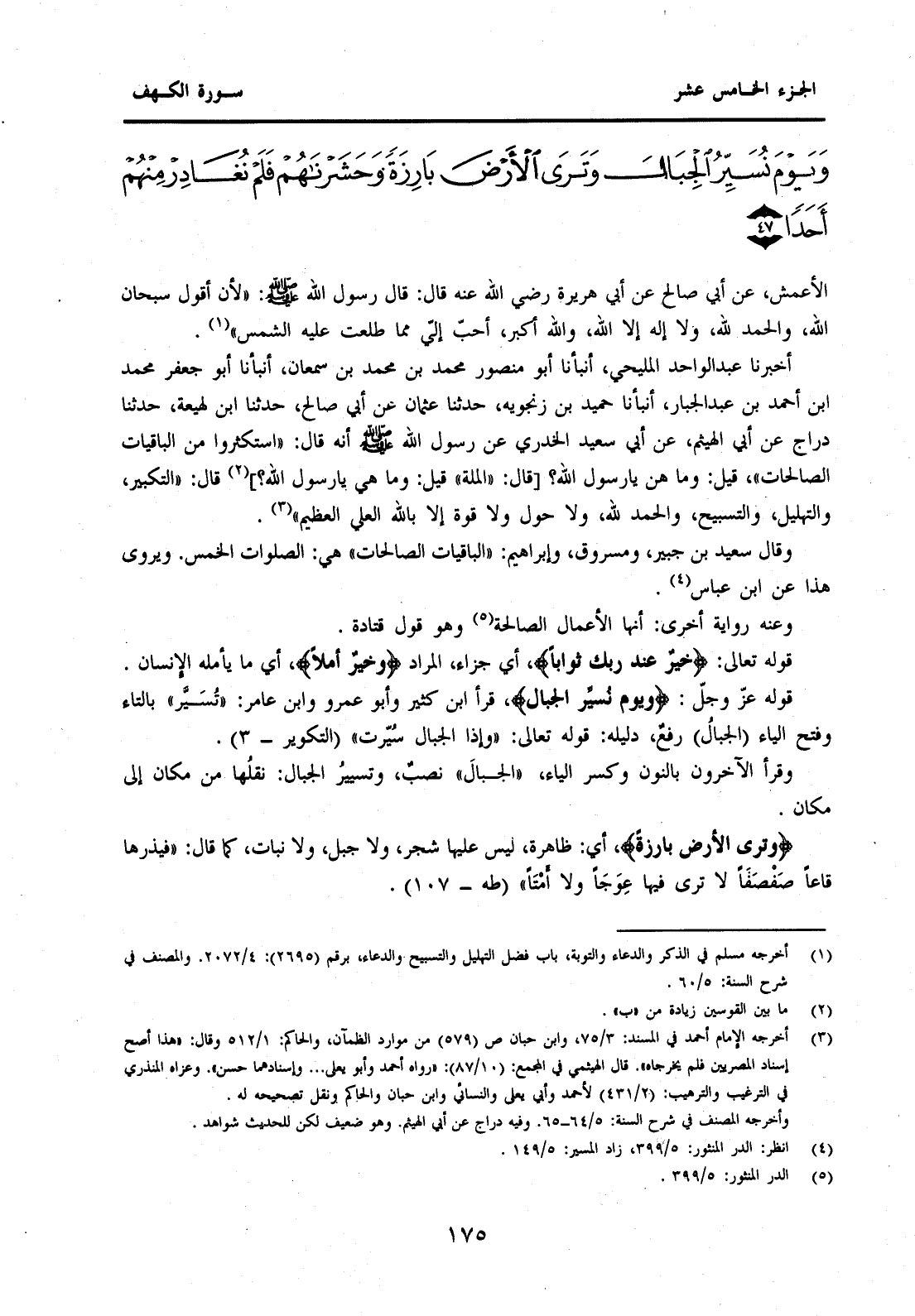 وَقَالَ سَعِيدُ بْنُ جُبَيْرٍ وَمَسْرُوقٌ وَإِبْرَاهِيمُ: "الباقيات الصَّالِحَاتُ" هِيَ: الصَّلَوَاتُ الْخَمْسُ. وَيُرْوَى هَذَا عَنِ ابْنِ عَبَّاسٍ (4) .
