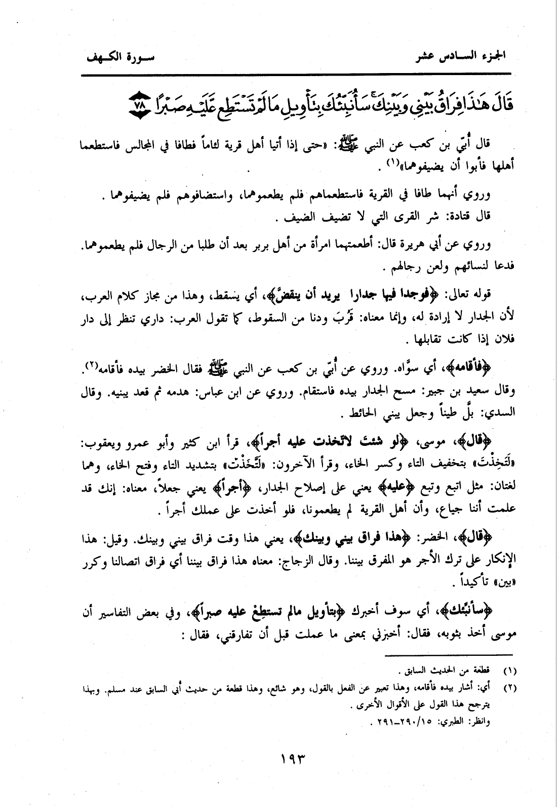 {قَالَ هَذَا فِرَاقُ بَيْنِي وَبَيْنِكَ سَأُنَبِّئُكَ بِتَأْوِيلِ مَا لَمْ تَسْتَطِعْ عَلَيْهِ صَبْرًا (78) }