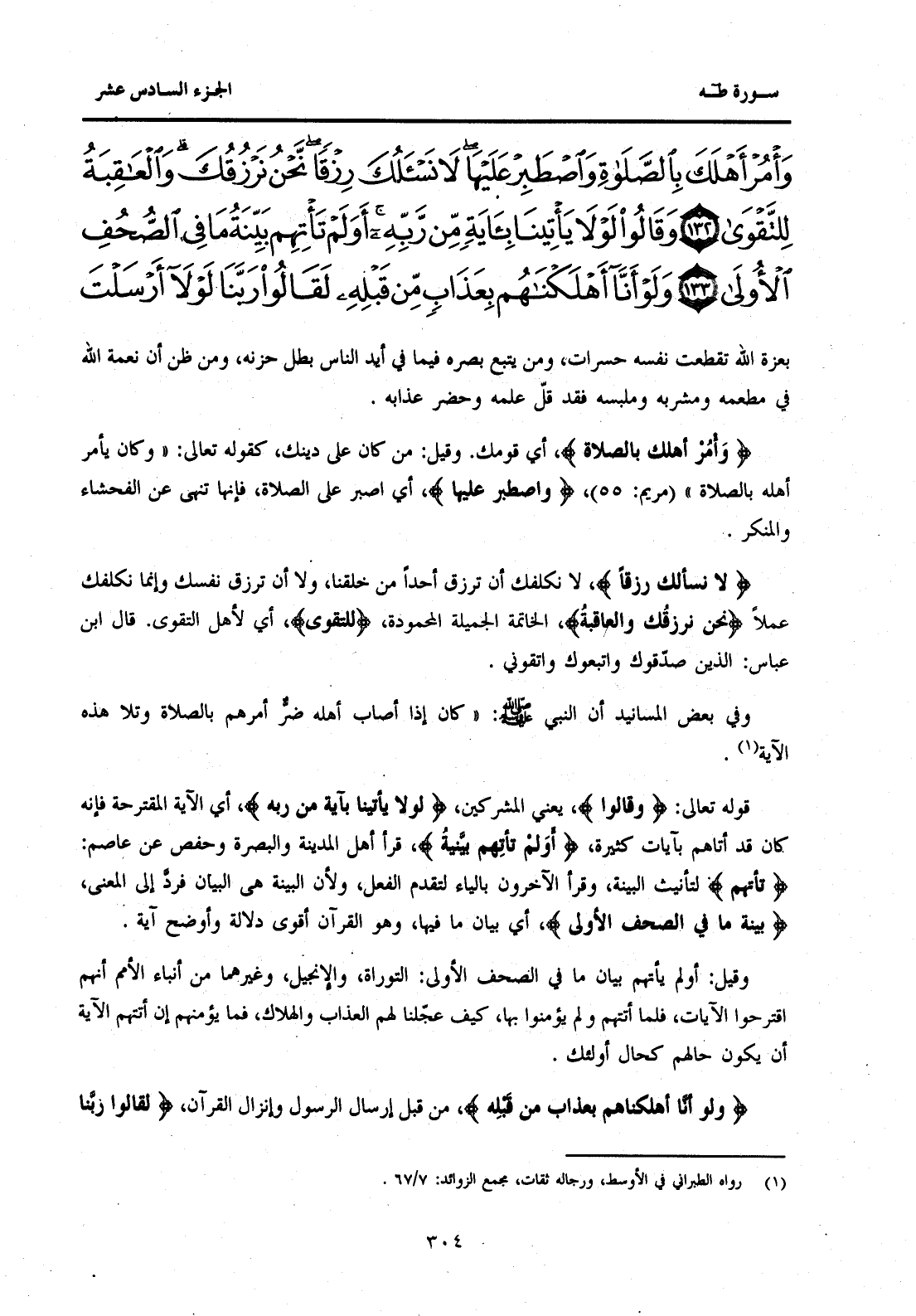{وَأْمُرْ أَهْلَكَ بِالصَّلَاةِ وَاصْطَبِرْ عَلَيْهَا لَا نَسْأَلُكَ رِزْقًا نَحْنُ نَرْزُقُكَ وَالْعَاقِبَةُ لِلتَّقْوَى (132) وَقَالُوا لَوْلَا يَأْتِينَا بِآيَةٍ مِنْ رَبِّهِ أَوَلَمْ تَأْتِهِمْ بَيِّنَةُ مَا فِي الصُّحُفِ الْأُولَى (133) وَلَوْ أَنَّا أَهْلَكْنَاهُمْ بِعَذَابٍ مِنْ قَبْلِهِ لَقَالُوا رَبَّنَا لَوْلَا أَرْسَلْتَ إِلَيْنَا رَسُولًا فَنَتَّبِعَ آيَاتِكَ مِنْ قَبْلِ أَنْ نَذِلَّ وَنَخْزَى (134) }