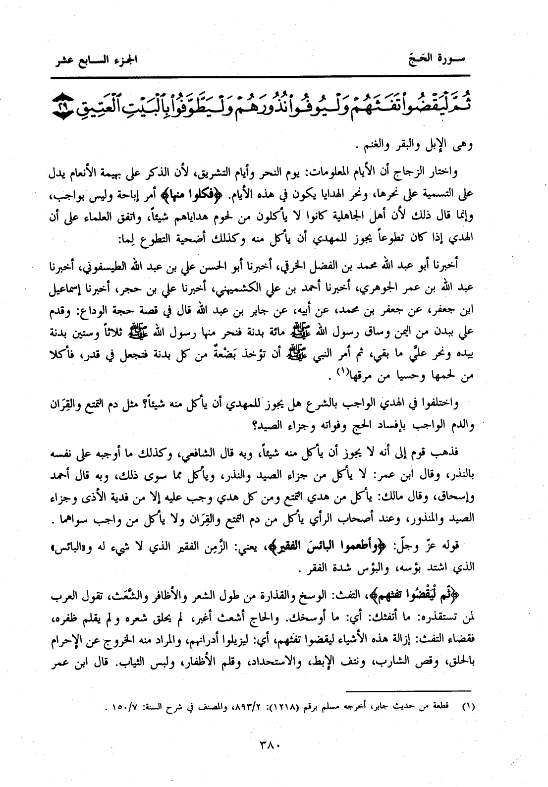 (1) قطعة من حديث جابر، أخرجه مسلم برقم (1218) : 2 / 893، والمصنف في شرح السنة: 7 / 150.