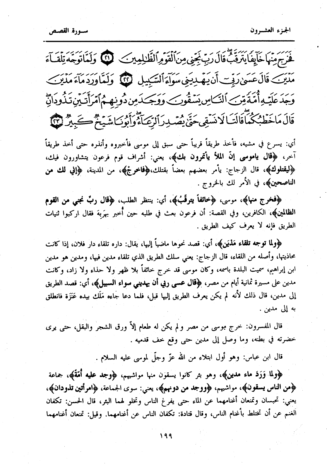 {وَلَمَّا تَوَجَّهَ تِلْقَاءَ مَدْيَنَ قَالَ عَسَى رَبِّي أَنْ يَهْدِيَنِي سَوَاءَ السَّبِيلِ (22) وَلَمَّا وَرَدَ مَاءَ مَدْيَنَ وَجَدَ عَلَيْهِ أُمَّةً مِنَ النَّاسِ يَسْقُونَ وَوَجَدَ مِنْ دُونِهِمُ امْرَأَتَيْنِ تَذُودَانِ قَالَ مَا خَطْبُكُمَا قَالَتَا لَا نَسْقِي حَتَّى يُصْدِرَ الرِّعَاءُ وَأَبُونَا شَيْخٌ كَبِيرٌ (23) }