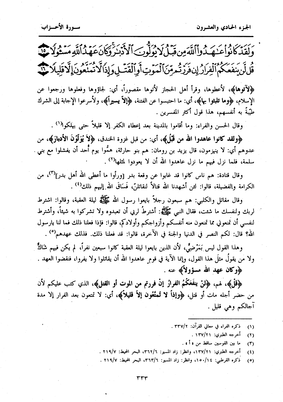 {وَلَقَدْ كَانُوا عَاهَدُوا اللَّهَ مِنْ قَبْلُ لَا يُوَلُّونَ الْأَدْبَارَ وَكَانَ عَهْدُ اللَّهِ مَسْئُولًا (15) }
