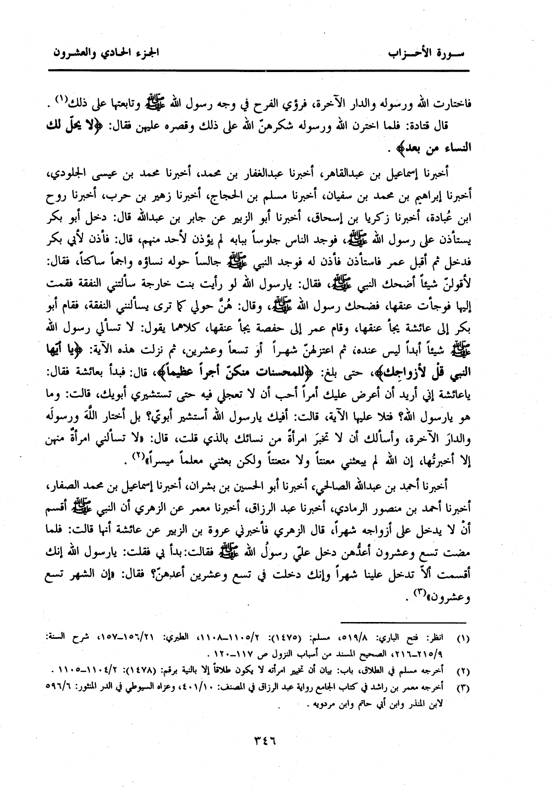 (1) انظر: فتح الباري: 8 / 519، مسلم: (1475) : 2 / 1105-1108، الطبري: 21 / 156-157، شرح السنة: 9 / 215-216، الصحيح المسند من أسباب النزول ص 117-120.