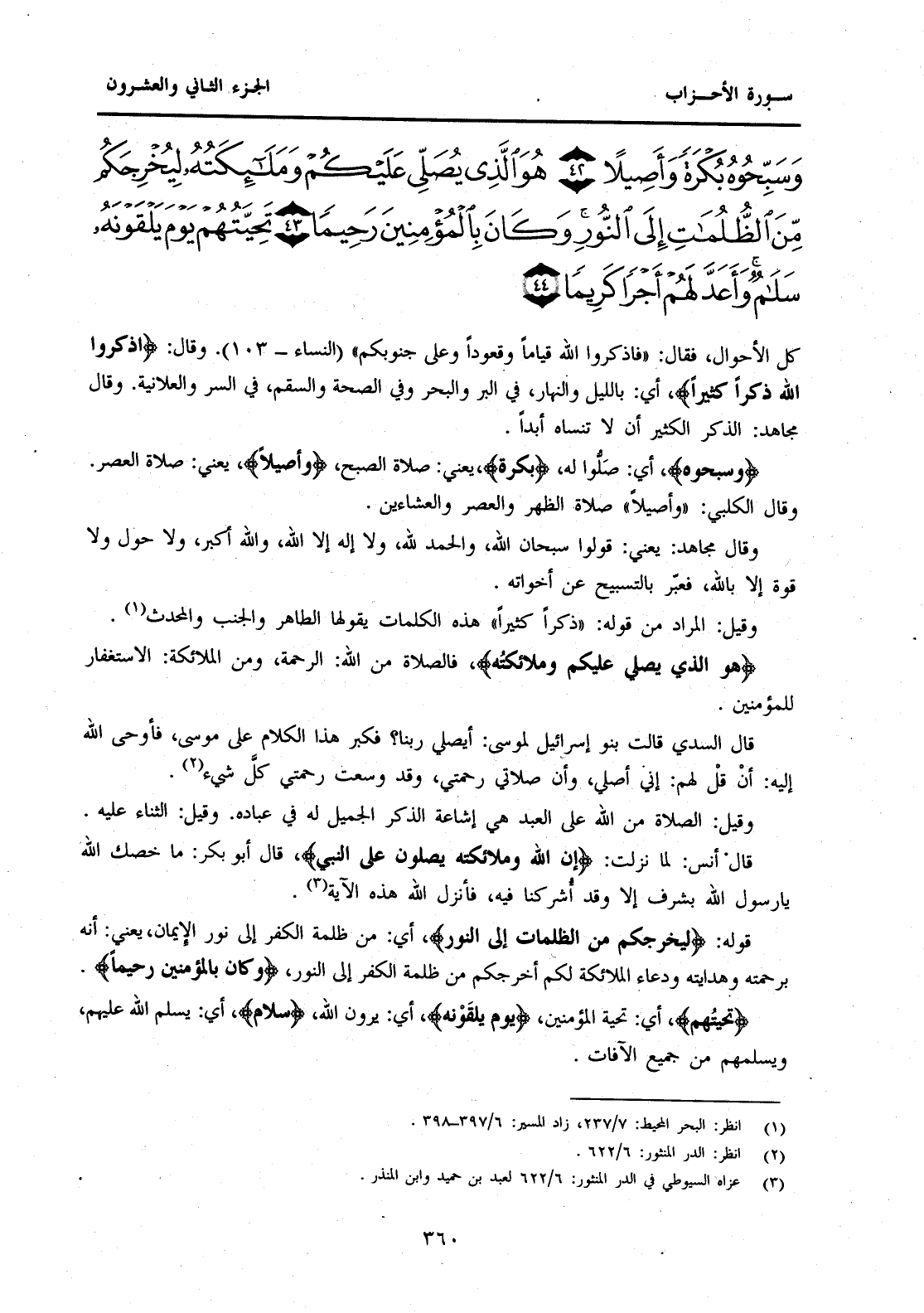 {وَسَبِّحُوهُ بُكْرَةً وَأَصِيلًا (42) هُوَ الَّذِي يُصَلِّي عَلَيْكُمْ وَمَلَائِكَتُهُ لِيُخْرِجَكُمْ مِنَ الظُّلُمَاتِ إِلَى النُّورِ وَكَانَ بِالْمُؤْمِنِينَ رَحِيمًا (43) }