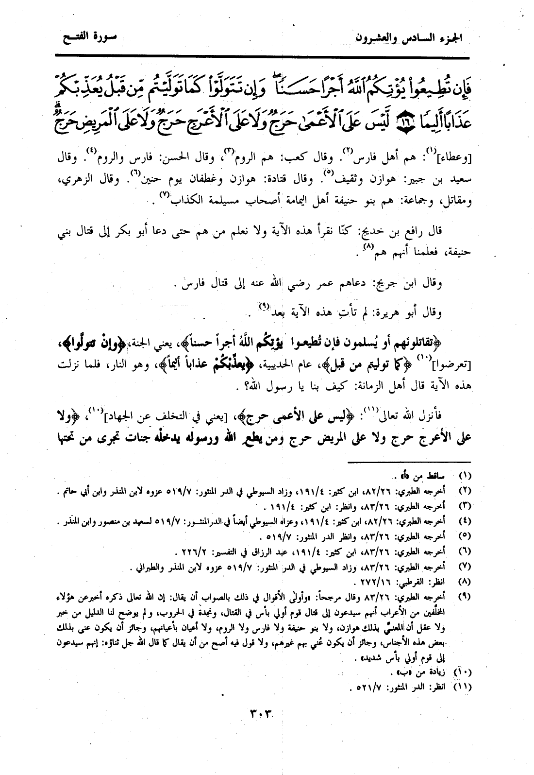 (6) أخرجه الطبري: 26 / 83، ابن كثير: 4 / 191، عبد الرزاق في التفسير: 2 / 226.