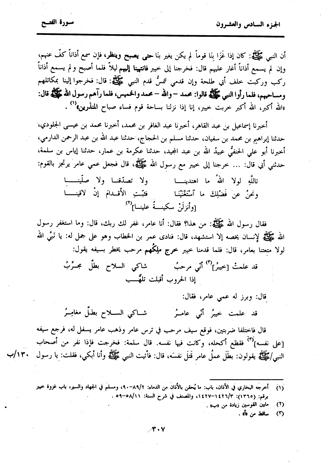 (1) أخرجه البخاري في الأذان، باب: ما يحقن بالأذان من الدماء: 2 / 89-90، ومسلم في الجهاد والسير، باب غزوة خيبر برقم: (1365) : 3 / 1426-1427، والمصنف في شرح السنة: 11 / 58-59.