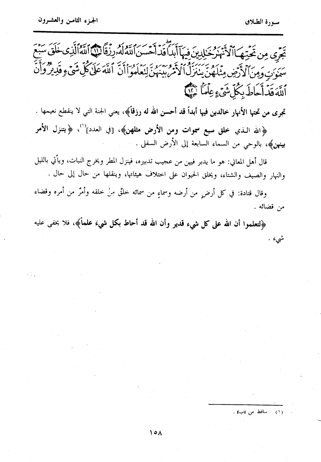 {اللَّهُ الَّذِي خَلَقَ سَبْعَ سَمَاوَاتٍ وَمِنَ الْأَرْضِ مِثْلَهُنَّ يَتَنَزَّلُ الْأَمْرُ بَيْنَهُنَّ لِتَعْلَمُوا أَنَّ اللَّهَ عَلَى كُلِّ شَيْءٍ قَدِيرٌ وَأَنَّ اللَّهَ قَدْ أَحَاطَ بِكُلِّ شَيْءٍ عِلْمًا (12) }