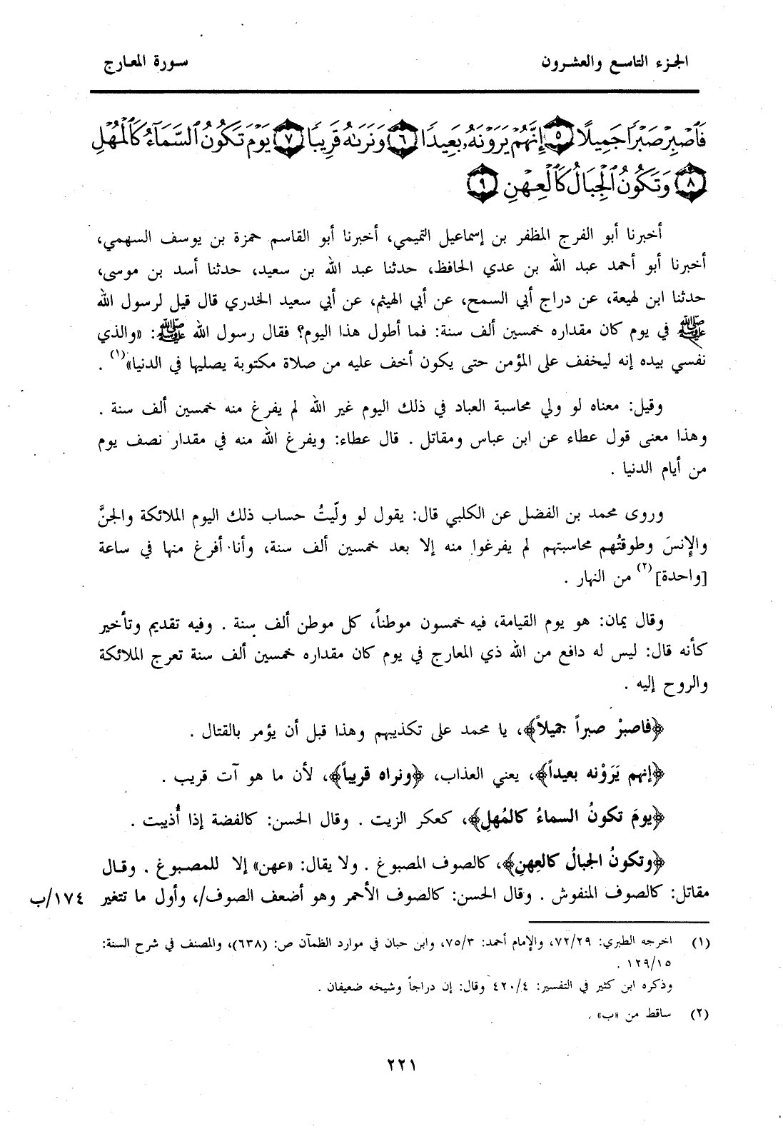(1) أخرجه الطبري: 29 / 72، والإمام أحمد: 3 / 75، وابن حبان في موارد الظمآن ص: (638) والمصنف في شرح السنة: 15 / 129. وذكره ابن كثير في التفسير: 4 / 420 وقال: إن دراجا وشيخه ضعيفان.