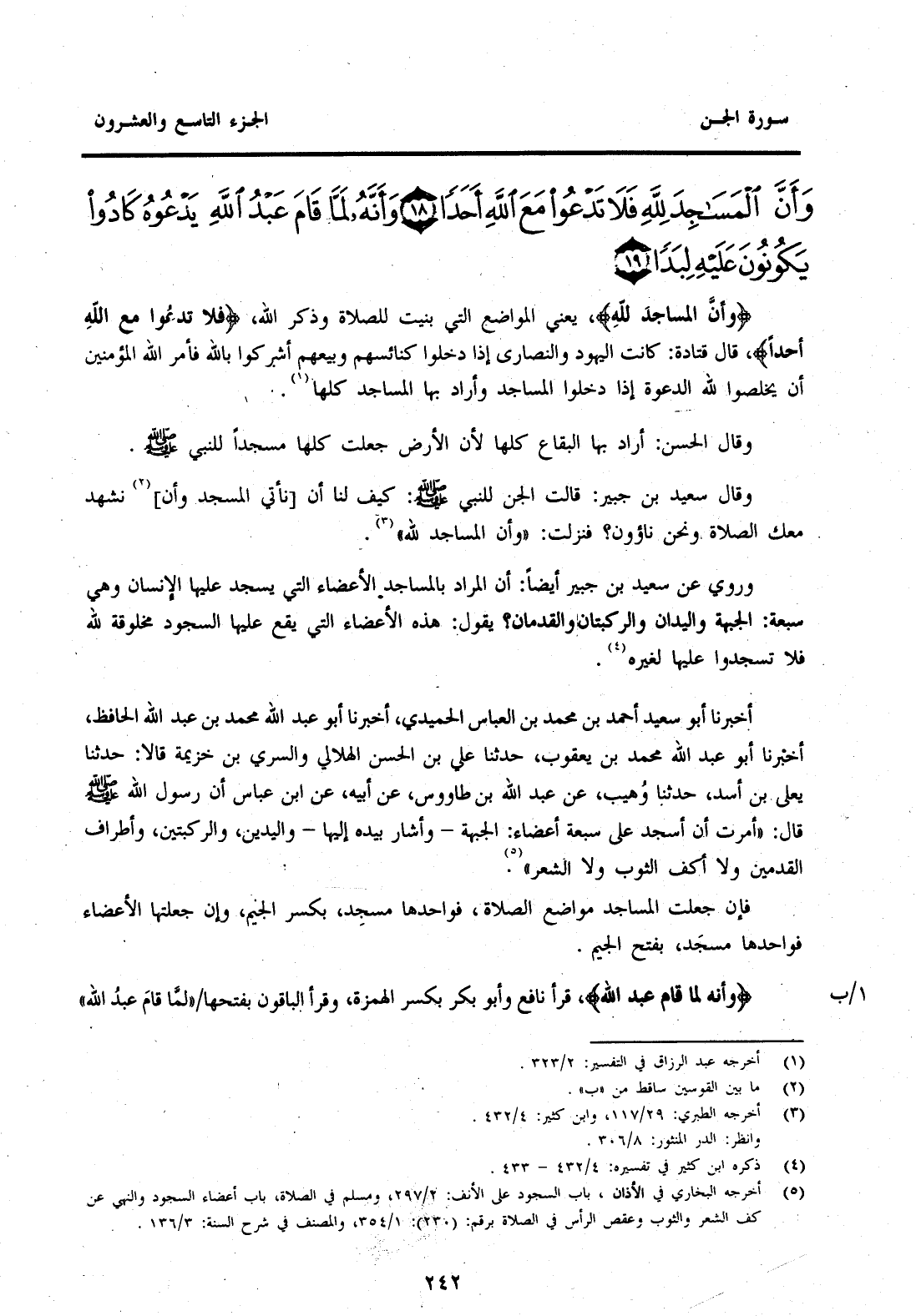 {وَأَنَّ الْمَسَاجِدَ لِلَّهِ فَلَا تَدْعُوا مَعَ اللَّهِ أَحَدًا (18) وَأَنَّهُ لَمَّا قَامَ عَبْدُ اللَّهِ يَدْعُوهُ كَادُوا يَكُونُونَ عَلَيْهِ لِبَدًا (19) }