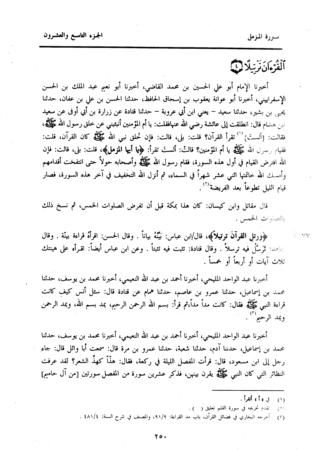 (3) أخرجه البخاري في فضائل القرآن، باب مد القراءة: 9 / 91، والمصنف في شرح السنة: 4 / 481.