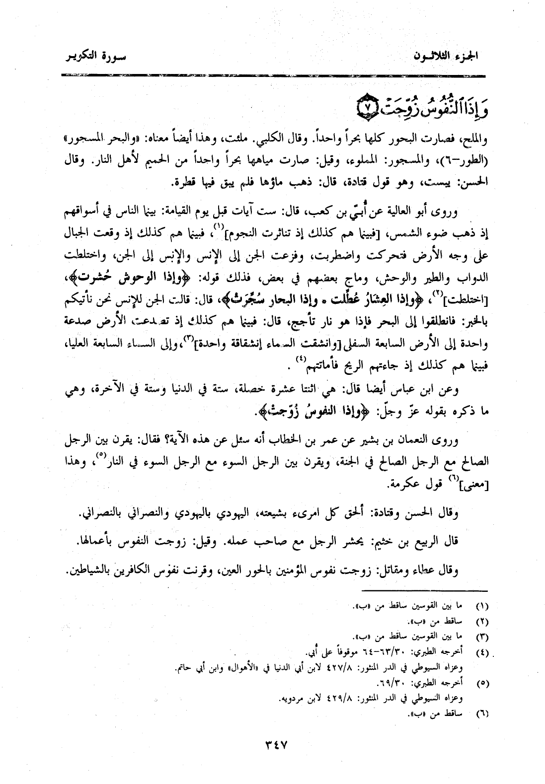 (5) أخرجه الطبري: 30 / 69، وعزاه السيوطي في الدر المنثور 8 / 429 لابن مردويه.