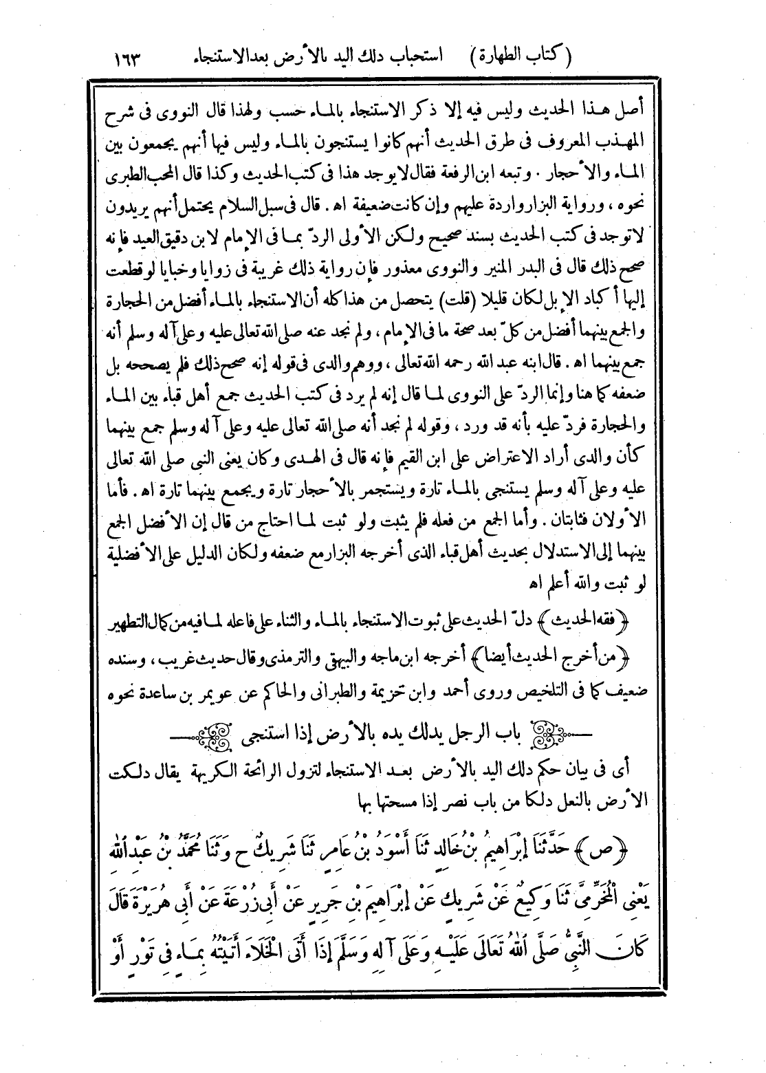 (فقه الحديث) دلّ الحديث على ثبوت الاستنجاء بالماء والثناء على فاعله لما فيه من كمال التطهير