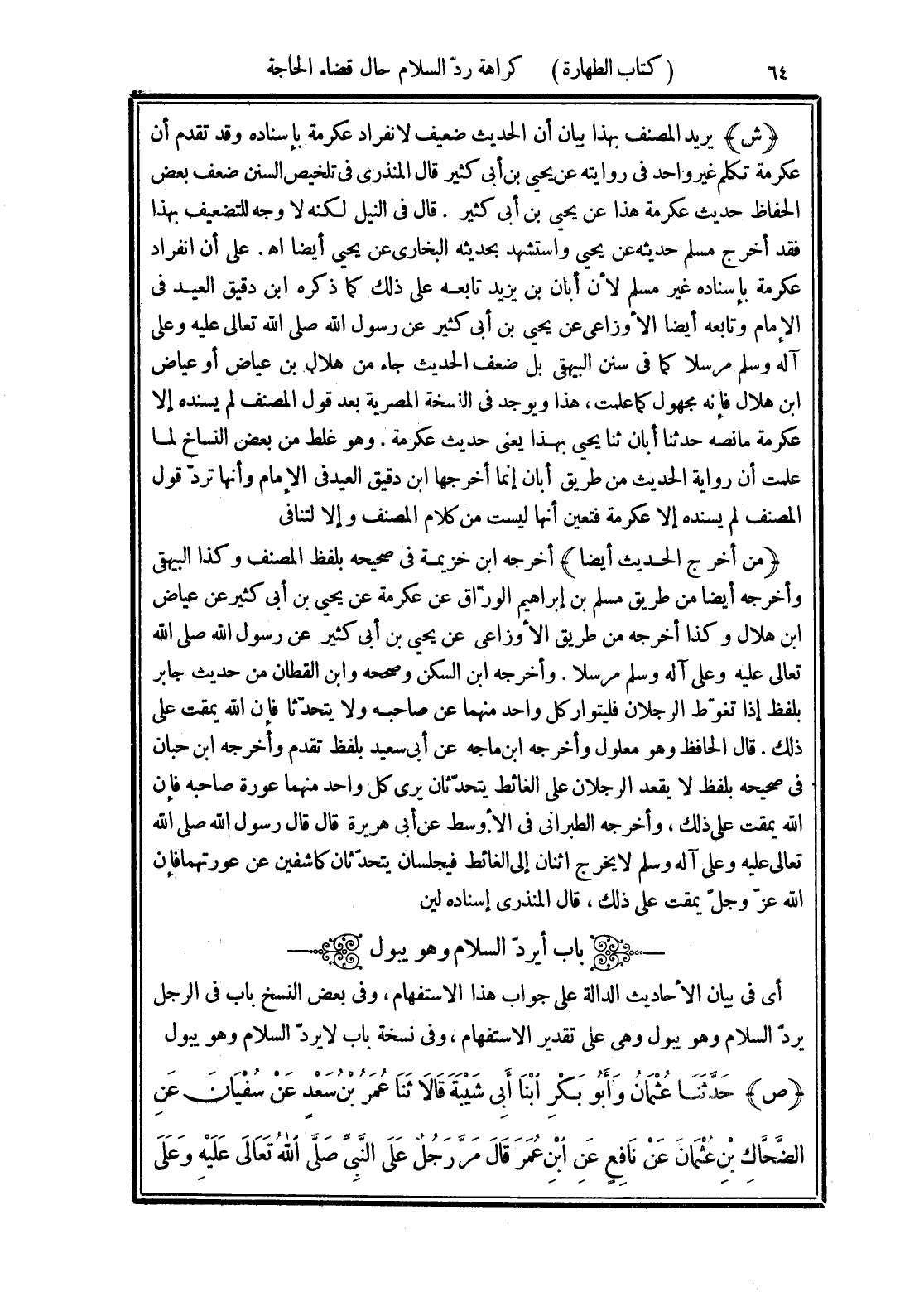 (باب أيردّ السلام وهو يبول)