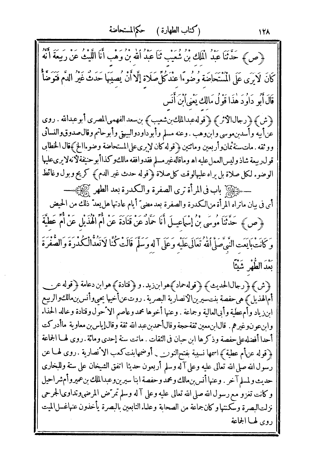 (ص) حَدَّثَنَا مُوسَى بْنُ إِسْمَاعِيلَ، أَنَا حَمَّادٌ، عَنْ قَتَادَةَ، عَنْ أُمِّ الْهُذَيْلِ، عَنْ أُمِّ عَطِيَّةَ وَكَانَتْ بَايَعَتِ النَّبِيَّ صَلَّى اللهُ تَعَالَى عَلَيْهِ وَعَلَى آلِهِ وسَلَّمَ قَالَتْ: «كُنَّا لَا نَعُدُّ الْكُدْرَةَ، وَالصُّفْرَةَ بَعْدَ الطُّهْرِ شَيْئًا»