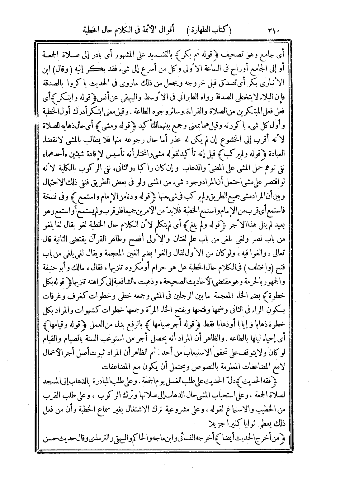 (قوله ثم بكر) بالتشديد على المشهور أى بادر إلى صلاة الجمعة أو إلى الجامع أو راح في الساعة الأولى وكل من أسرع إلى شيء فقد بكر إليه (وقال) ابن الأنبارى بكر أى تصدّق قبل خروجه ويجعل من ذلك ما روى في الحديث باكروا بالصدقة فإن البلاء لا يتخطى الصدقة رواه الطبرانى في الأوسط والبيهقي عن أنس