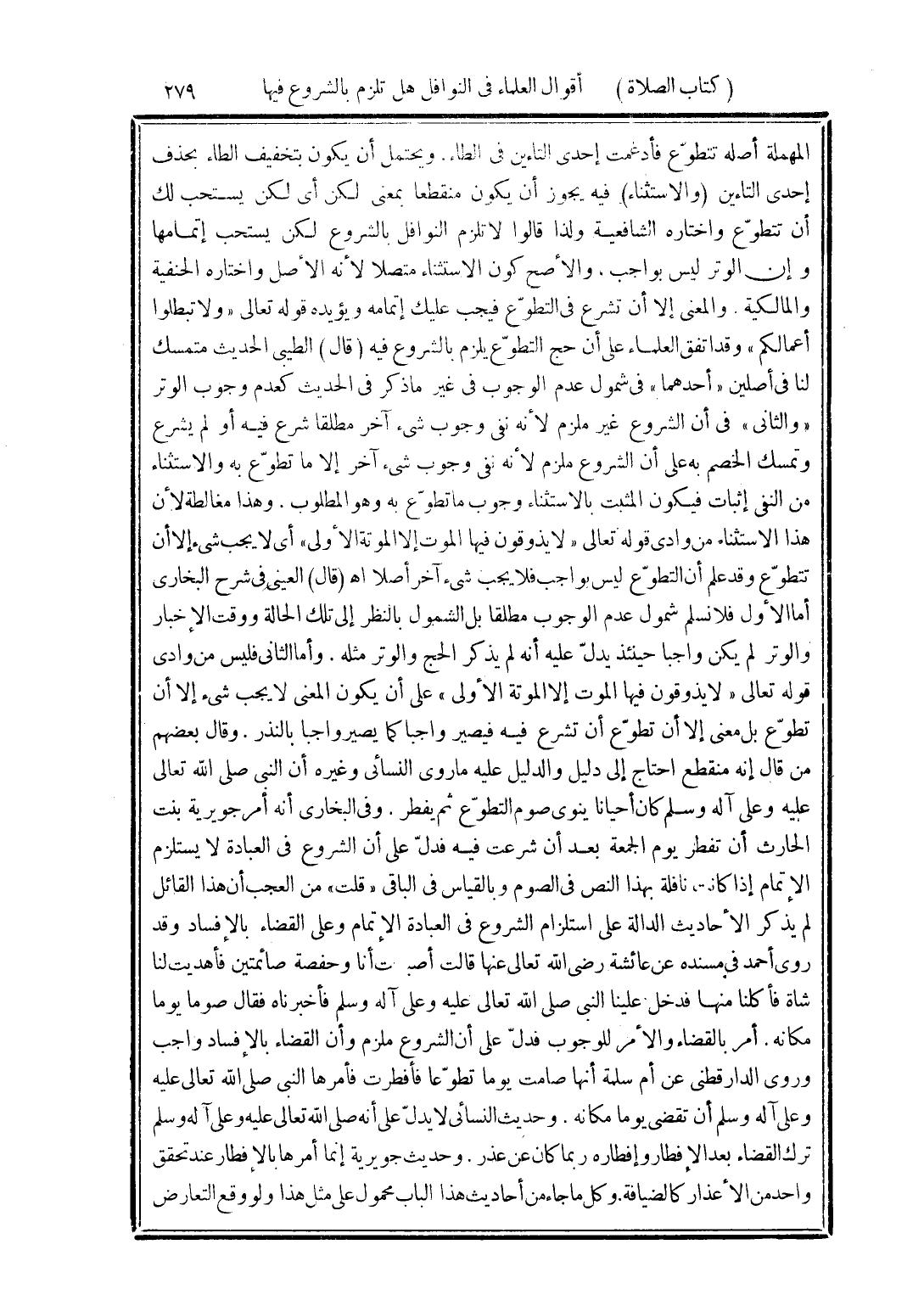 المهملة أصله تتطوع فأدغمت إحدى التائين في الطاء ويحتمل أن يكون بتخفيف الطاء بحذف إحدى التائين (والاستثناء) فيه يجوز أن يكون منقطعا بمعنى لكن أي لكن يستحب لك أن تتطوّع واختاره الشافعية ولذا قالوا لا تلتزم النوافل بالشروع لكن يستحب إتمامها وإن الوتر ليس بواجب. والأصح كون الاستثناء متصلا لأنه الأصل واختاره الحنفية والمالكية. والمعنى إلا أن تشرع في التطوّع فيجب عليك إتمامه ويؤيه قوله تعالى "ولا تبطلوا أعمالكم" وقد اتف العلماء على أن حج التطوّع يلزم بالشروع فيه (قال) الطيبي الحديث متمسك لنا في أصلين "أحدهما" في شمول عدم الوجوب في غير ما ذكر في الحديث كعدم وجوب الوتر "والثانى" في أن الشروع غير ملزم لأنه نفي وجوب شئ آخر مطلقا شرع فيه أو لم يشرع وتمسك الخصم به على أن الشروع ملزم لأنه نفى وجوب شيء آخر إلا ما تطوّع به والاستثناء من النفي إثبات فيكون المثبت الاستثناء وجوب ما تطوّع به وهو المطلوب. وهذا مغالطة لأن هذا الاستثناء من وادى قوله تعالى "لا يذوقون فيها الموت إلا الموتة الأولى" أي لا يجب شئ إلا أن تتطوّع وقد علم أن التطوّع ليس بواجب فلا يجب شئ آخر أصلا اهـ (قال) العيني في شرح البخارى أما الأول فلا نسلم شمول عدم الوجوب مطلقا بل الشمول بالنظر إلى تلك الحالة ووقت الإخبار والوتر لم يكن واجبا حينئذ يدلّ عليه أنه لم يذكر الحج والوتر مثله. وأما الثانى فليس من وادى قوله تعالى "لا يذوقون فيها الموت إلا الموتة الأولى" على أن يكون المعنى لا يجب شئ إلا أن تطوّع بل معنى إلا أن تطوّع أن تشرع فيه فيصير واجبا كما يصير واجبا بالنذر. وقال بعضهم من قال إنه منقطع احتاج إلى دليل والدليل عليه ما روى النسائى وغيره أن النبى صلى الله تعالى عليه وعلى آله وسلم كان أحيانا ينوى صوم التطوّع ثم يفطر. وفى البخارى أنه أمر جويرية بنت الحارث أن تفطر يوم الجمعة بعد أن شرعت فيه فدلّ على أن الشروع في العبادة لا يستلزم الإتمام إذا كانت نافلة بهذا النص في الصوم وبالقياس في الباقى "قلت" من العجب أن هذا القائل لم يذكر الأحاديث الدالة على استلزام الشروع في العبادة الإتمام وعلى القضاء بالإفساد وقد روى أحمد في مسنده عن عائشة رَضِيَ اللَّهُ تَعَالَى عَنْهُا قالت أصبحت أنا وحفصة صائمتين فأهديت لنا شاة فأكلنا منها فدخل علينا النبى صلى الله تعالى عليه وعلى آله وسلم فأخبرناه فقال صوما يوما مكانه. أمر بالقضاء والأمر للوجوب فدلّ على أن الشروع ملزم وأن القضاء بالإفساد واجب وروى الدارقطني عن أم سلمة أنها صامت يوما تطوّعا فأفطرت فأمرها النبى صلى الله تعالى عليه وعلى آله وسلم أن تقضى يوما مكانه. وحديث النسائى لا يدلّ على أنه صلى الله تعالى عليه وعلى له وسلم ترك القضاء بعد الإفطار وإفطاره ربما كان عن عذر. وحديث جويرية إنما أمرها بالإفطار عند تحقق واحد من الأعذار كالضيافة. وكل ما جاء من أحاديث هذا الباب محمول على مثل هذا ولو وقع التعارض