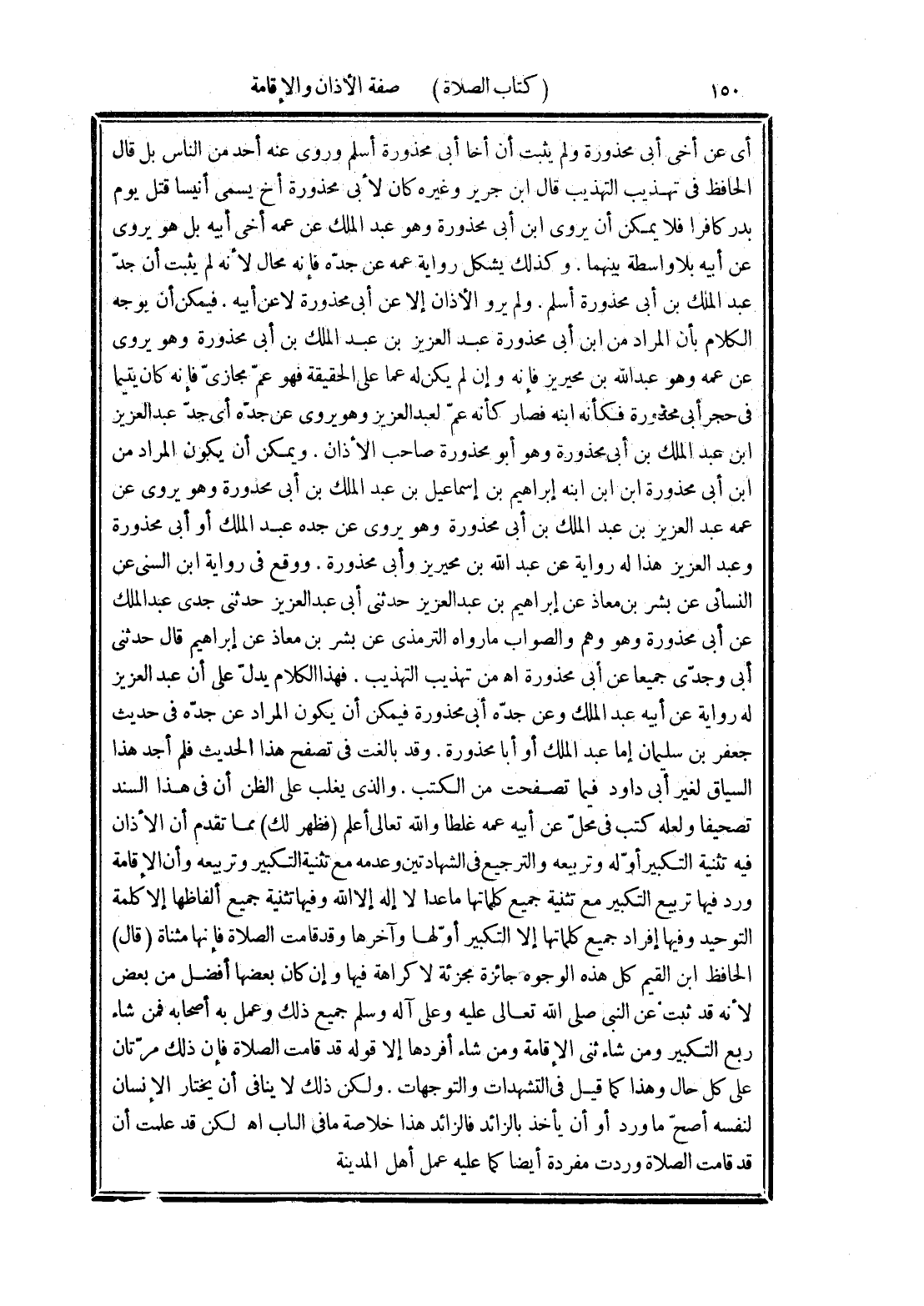 أى عن أخى أبى محذورة ولم يثبت أن أخا أبى محذورة أسلم وروى عنه أحد من الناس بل قال الحافظ في تهذيب التهذيب قال ابن جرير وغيره كان لأبى محذورة أخ يسمى أنيسا قتل يوم بدر كافرا فلا يمكن أن يروى ابن أبى محذورة وهو عبد الملك عن عمه أخى أبيه بل هو يروى عن أبيه بلا واسطة بينهما. وكذلك يشكل رواية عمه عن جدّه فإنه محال لأنه لم يثبت أن جدّ عبد الملك بن أبى محذورة أسلم. ولم يرو الأذان إلا عن أبي محذورة لا عن أبيه. فيمكن أن يوجه الكلام بأن المراد من ابن أبى محذورة عبد العزيز بن عبد الملك بن أبى محذورة وهو يروى عن عمه وهو عبد الله بن محيريز فإنه وإن لم يكن له عما على الحقيقة فهو عمّ مجازىّ فإنه كان يتيما في حجر أبى محذورة فكأنه ابنه فصار كأنه عمّ لعبد العزيز وهو يروى عن جدّه أى جدّ عبد العزيز ابن عبد الملك بن أبى محذورة وهو أبو محذورة صاحب الأذان. ويمكن أن يكون المراد من ابن أبى محذورة ابن ابن ابنه إبراهيم بن إسماعيل بن عبد الملك بن أبى محذورة وهو يروى عن عمه عبد العزيز بن عبد الملك بن أبى محذورة وهو يروى عن جده عبد الملك أو أبى محذورة وعبد العزيز هذا له رواية عن عبد الله بن محيريز وأبى محذورة. ووقع في رواية ابن السني عن النسائى عن بشر بن معاذ عن إبراهيم بن عبد العزيز حدثني أبى عبد العزيز حدثنى جدى عبد الملك عن أبى محذورة وهو وهم والصواب ما رواه الترمذى عن بشر بن معاذ عن إبراهيم قال حدثنى أبي وجدّى جميعا عن أبى محذورة اهـ من تهذيب التهذيب. فهذا الكلام يدلّ على أن عبد العزيز له رواية عن أبيه عبد الملك وعن جدّه أبى محذورة فيمكن أن يكون المراد عن جدّه في حديث جعفر بن سليمان إما عبد الملك أو أبا محذورة. وقد بالغت في تصفح هذا الحديث فلم أجد هذا السياق لغير أبى داود فيما تصفحت من الكتب. والذى يغلب على الظن أن في هذا السند تصحيفا ولعله كتب في محلّ عن أبيه عمه غلطا والله تعالى أعلم (ظهر لك) مما تقدم أن الأذان فيه تثنية التكبير أوّله وتربيعه والترجيع في الشهادتين وعدمه مع تثنية التكبير وتربيعه وأن الإقامة ورد فيها تربيع التكبير مع تثنية جميع كلماتها ما عدا لا إله إلا الله وفيها تثنية جميع ألفاظها إلا كلمة التوحيد وفيها إفراد جميع كلماتها إلا التكبير أوّلها وآخرها وقد قامت الصلاة فإنها مثناة (قال) الحافظ ابن القيم كل هذه الوجوه جائزة مجزئة لا كراهة فيها وإن كان بعضها أفضل من بعض لأنه قد ثبت عن النبى صلى الله تعالى عليه وعلى آله وسلم جميع ذلك وعمل به أصحابه فمن شاء ربع التكبير ومن شاء ثنى الإقامة ومن شاء أفردها إلا قوله قد قامت الصلاة فإن ذلك مرّتان على كل حال وهذا كما قيل في التشهدات والتوجهات. ولكن ذلك لا ينافى أن يختار الإنسان لنفسه أصحّ ما ورد أو أن يأخذ بالزائد فالزائد هذا خلاصة ما في الباب اهـ لكن قد علمت أن قد قامت الصلاة وردت مفردة أيضا كما عليه عمل أهل المدينة