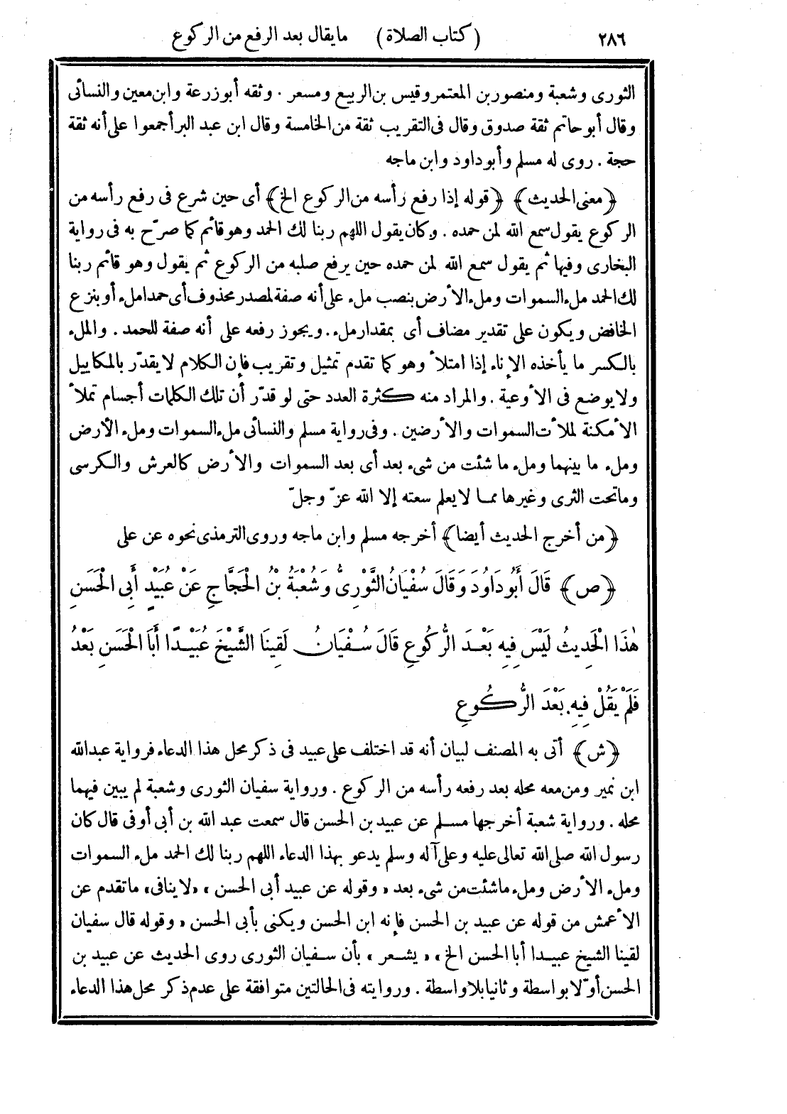 (ص) قَالَ أَبُو دَاوُدَ: قَالَ سُفْيَانُ الثَّوْرِيُّ، وَشُعْبَةُ بْنُ الْحَجَّاجِ، عَنْ عُبَيْدٍ أَبِي الْحَسَنِ، هَذَا الْحَدِيثُ لَيْسَ فِيهِ بَعْدَ الرُّكُوعِ، قَالَ سُفْيَانُ: " لَقِينَا الشَّيْخَ عُبَيْدًا أَبَا الْحَسَنِ، بَعْدُ، فَلَمْ يَقُلْ فِيهِ: بَعْدَ الرُّكُوعِ ".
