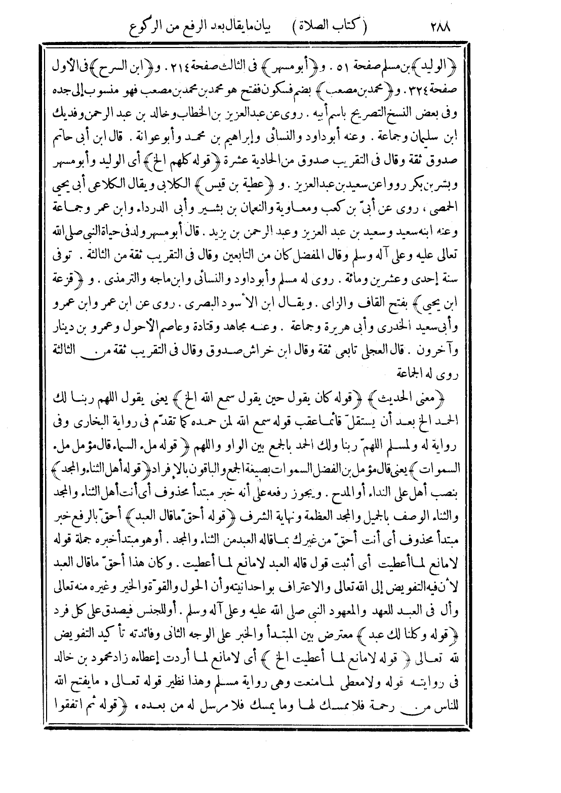(قوله أحق ما قال العبد) أحق بالرفع خبر مبتدأ محذوف أى أنت أحق من غيرك بما قاله العبد من الثناء والمجد. أو هو مبتدأ خبره جملة قوله لا مانع لما أعطيت أى أثبت قول قاله العبد لا مانع لما أعطيت. وكان هذا أحق ما قال العبد لأن فيه التفويض إلى الله تعالى والاعتراف بواحدا نيته وأن الحول والقوة والخير وغيره منه تعالى وأل في العبد للعهد والمعهود النبي صلى الله عليه وعلى آله وسلم. أو للجنس فيصدق على كل فرد