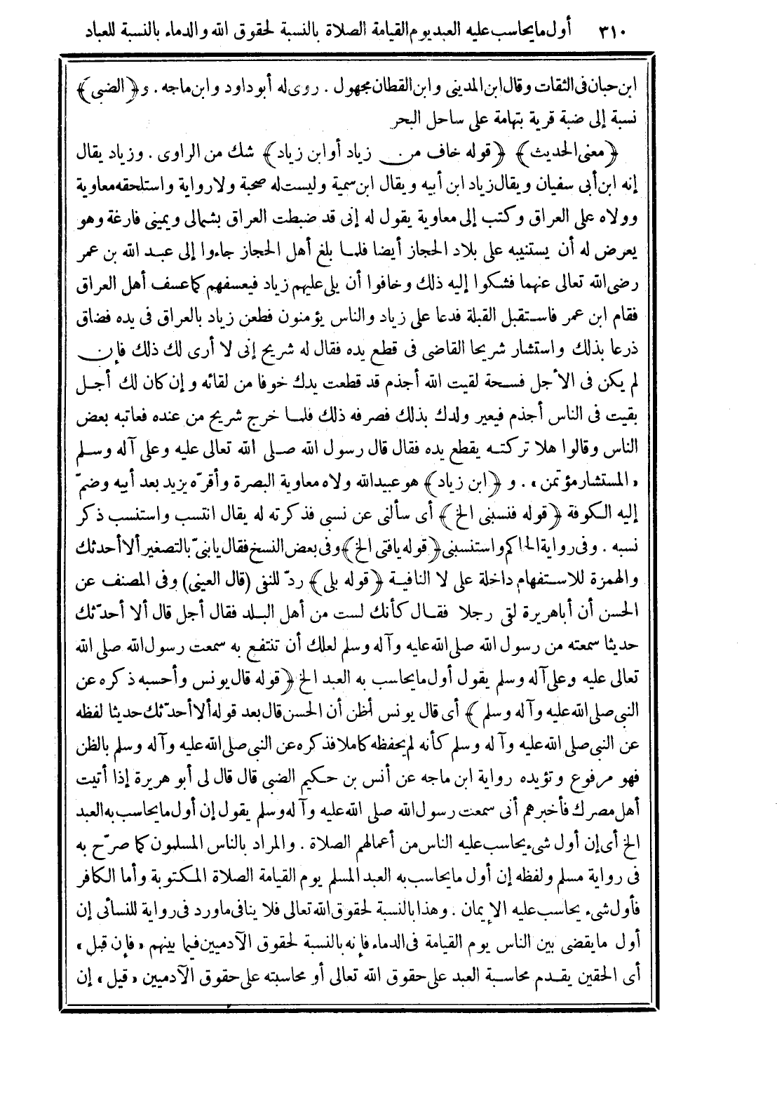 (قوله قال يونس وأحسبه ذكره عن النبي صلى الله عليه وآله وسلم) أى قال يونس أظن أن الحسن قال بعد قوله ألا أحدّثك حديثا لفظه عن النبى صلى الله عليه وآله وسلم كأنه لم يحفظه كاملا فذكره عن النبي صلى الله عليه وآله وسلم بالظن فهو مرفوع وتؤيده رواية ابن ماجه عن أنس بن حكيم الضبي قال قال لى أبو هريرة إذا أتيت أهل مصرك فأخبرهم أني سمعت رسول الله صلى الله عليه وآله وسلم يقول إن أول ما يحاسب به العبد الخ أى إن أول شئ يحاسب عليه الناس من أعمالهم الصلاة. والمراد بالناس المسلمون كما صرح به في رواية مسلم ولفظه إن أول ما يحاسب به العبد المسلم يوم القيامة الصلاة المكتوبة وأما الكافر فأول شئ يحاسب عليه الإيمان. وهذا بالنسبة لحقوق الله تعالى فلا ينافي ما ورد في رواية للنسائى إن أول ما يقضى بين الناس يوم القيامة في الدماء فإنه بالنسبة لحقوق الآدميين فيما بينهم "فإن قبل" أى الحقين يقدم محاسبة العبد على حقوق الله تعالى أو محاسبته على حقوق الآدميين "قيل" إن