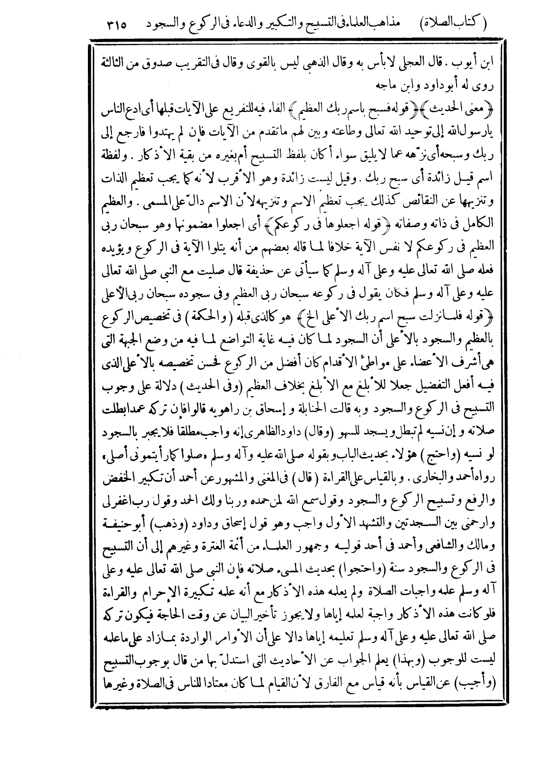 عليه وعلى آله وسلم فكان يقول في ركوعه سبحان ربى العظيم وفي سجوده سبحان ربى الأعلى