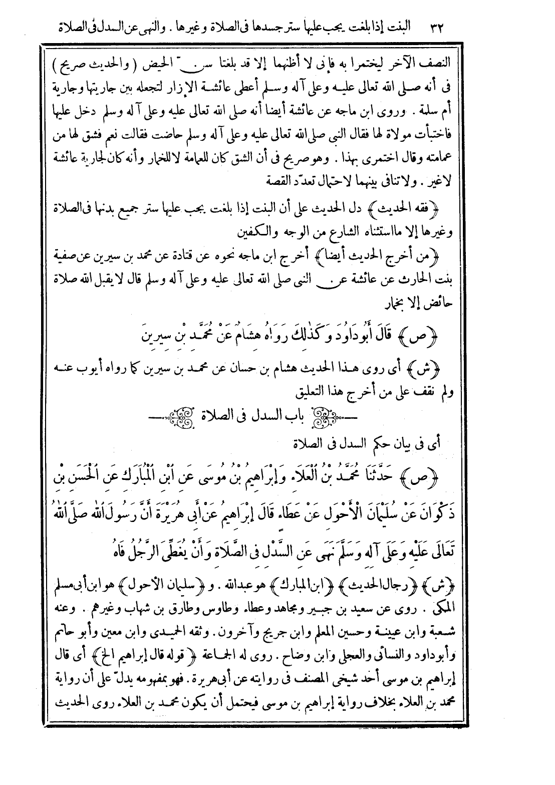 (ص) حَدَّثَنَا مُحَمَّدُ بْنُ الْعَلَاءِ، وَإِبْرَاهِيمُ بْنُ مُوسَى، عَنِ ابْنِ الْمُبَارَكِ، عَنِ الْحَسَنِ بْنِ ذَكْوَانَ، عَنْ سُلَيْمَانَ الْأَحْوَلِ، عَنْ عَطَاءٍ -قَالَ إِبْرَاهِيمُ-: عَنْ أَبِي هُرَيْرَةَ، أَنَّ رَسُولَ اللَّهِ صَلَّى اللهُ تَعَالَى عَلَيْهِ وَعَلَى آلِهِ وَسَلَّمَ «نَهَى عَنِ السَّدْلِ فِي الصَّلَاةِ وَأَنْ يُغَطِّيَ الرَّجُلُ فَاهُ».