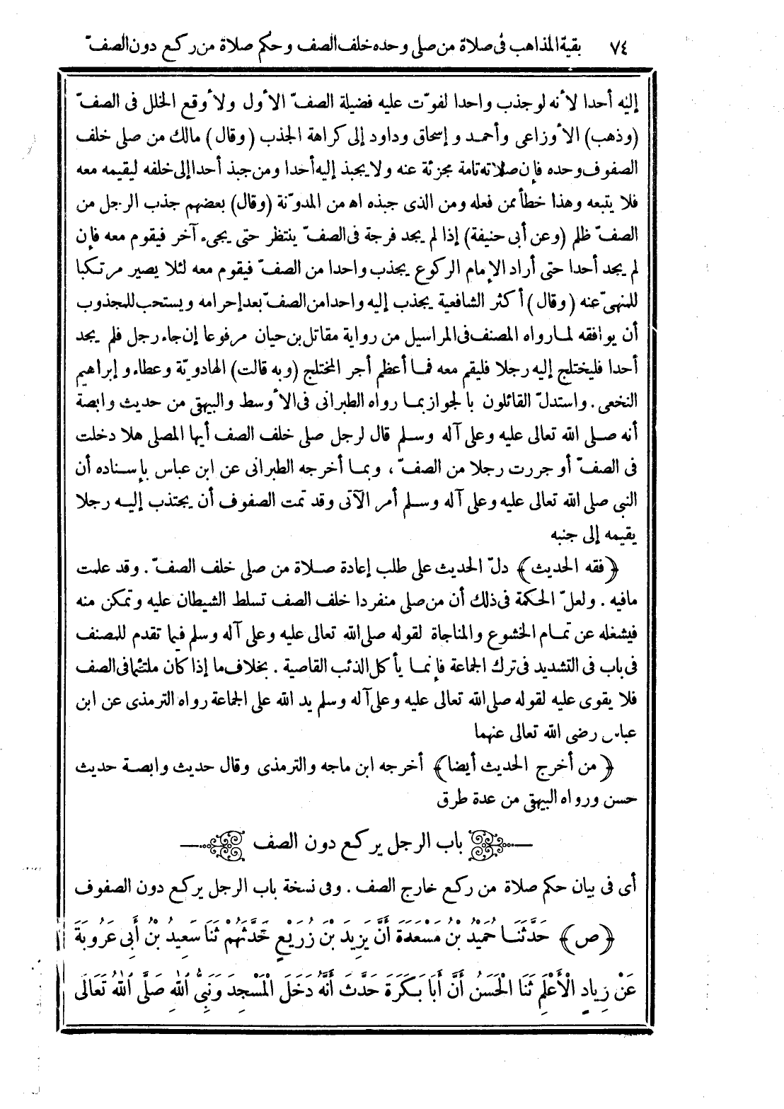 أى في بيان حكم صلاة من ركع خارج الصف. وفي نسخة باب الرجل يركع دون الصفوف