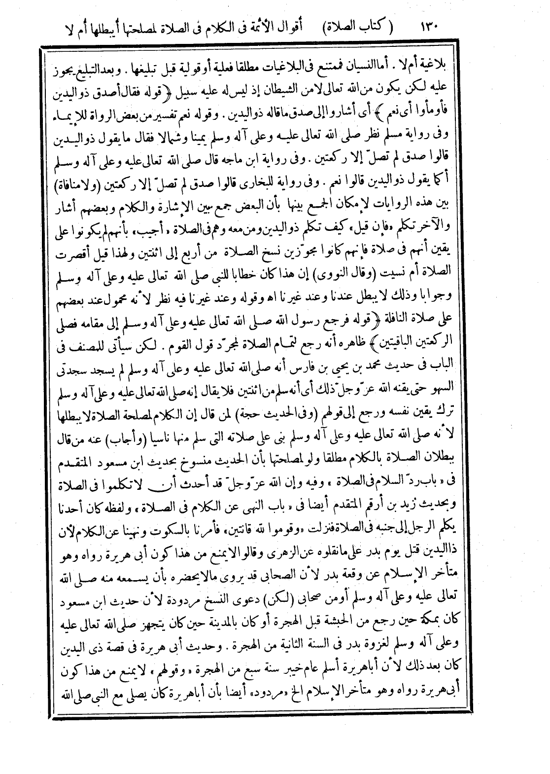 "فإن قيل" كيف تكلم ذو اليدين ومن معه وهم في الصلاة "أجيب" بأنهم لم يكونوا على يقين أنهم في صلاة فإنهم كانوا مجوّزين نسخ الصلاة من أربع إلى اثنتين ولهذا قيل أقصرت الصلاة أم نسيت (وقال النووي) إن هذا كان خطابًا للنبي صلى الله تعالى عليه وعلى آله وسلم وجوابا وذلك لا يبطل عندنا وعند غيرنا اهـ وقوله وعند غيرنا فيه نظر لأنه محمول عند بعضهم على صلاة النافلة