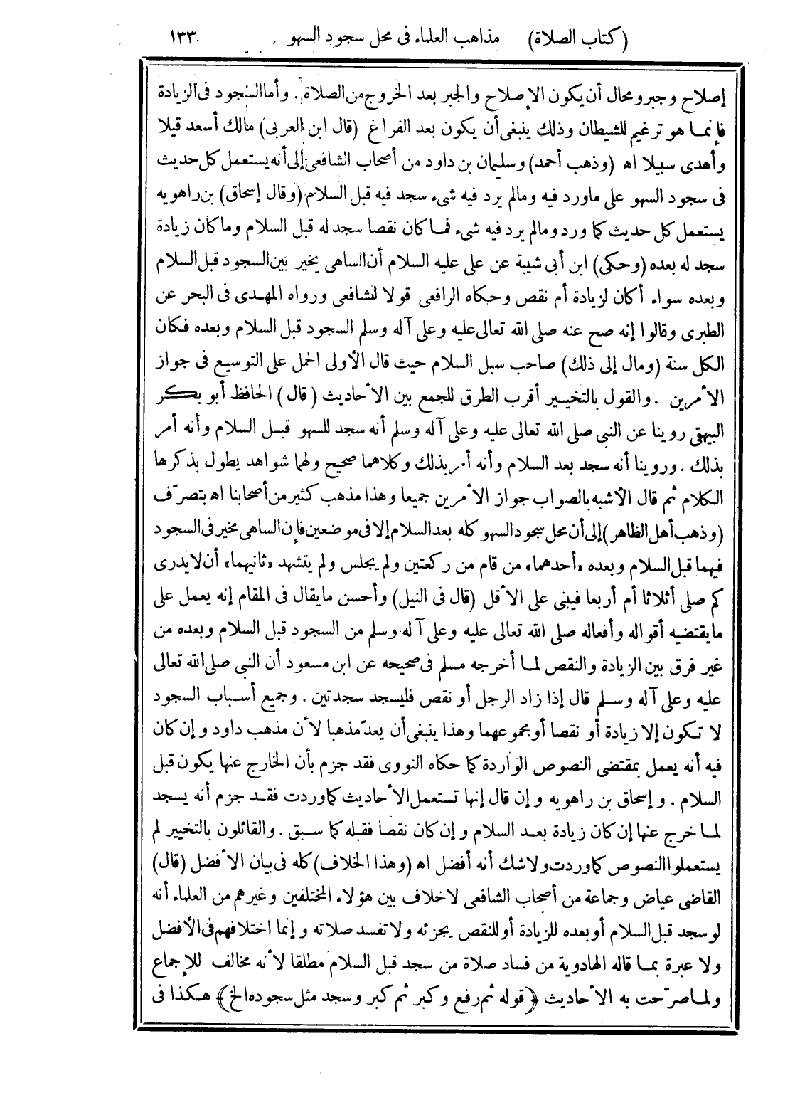 (قال) الحافظ أبو بكر البيهقي روينا عن النبي صلى الله تعالى عليه وعلى آله وسلم أنه سجد للسهو قبل السلام وأنه أمر بذلك. وروينا أنه سجد بعد السلام وأنه أمر بذلك وكلاهما صحيح ولهما شواهد يطول بذكرها الكلام ثم قال الأشبه بالصواب جواز الأمرين جميعًا. وهذا مذهب كثيرين من أصحابنا اهـ بتصرّف