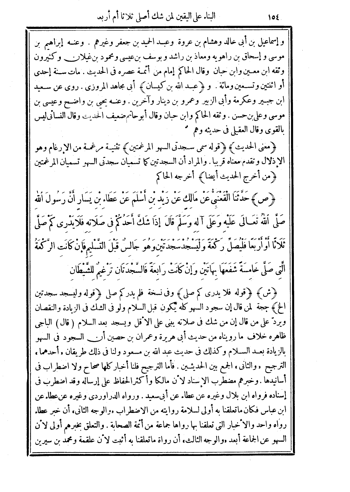 (ص) حَدَّثَنَا الْقَعْنَبِيُّ عَنْ مَالِكٍ عَنْ زَيْدِ بْنِ أَسْلَمَ عَنْ عَطَاءِ بْنِ يَسَارٍ أَنَّ رَسُولَ اللهِ -صَلَّى الله تَعَالَى عَلَيْهِ وَعَلَى آلِهِ وَسَلَّمَ- قَالَ "إِذَا شَكَّ أَحَدُكُمْ في صَلاَتِهِ فَلاَ يَدْرِي كَمْ صَلَّى ثَلاَثًا أَوْ أَرْبَعًا فَلْيُصَلِّ رَكْعَةً وَيَسْجُدْ سَجْدَتَيْنِ وَهُوَ جَالِسٌ قَبْلَ التَّسْلِيمِ فَإِنْ كَانَتِ الرَّكْعَةُ الَّتِي صَلَّى خَامِسَةً شَفَعَهَا بِهَاتَيْنِ وَإِنْ كَانَتْ رَابِعَةً فَالسَّجْدَتَانِ تَرْغِيمٌ لِلشَّيْطَانِ".