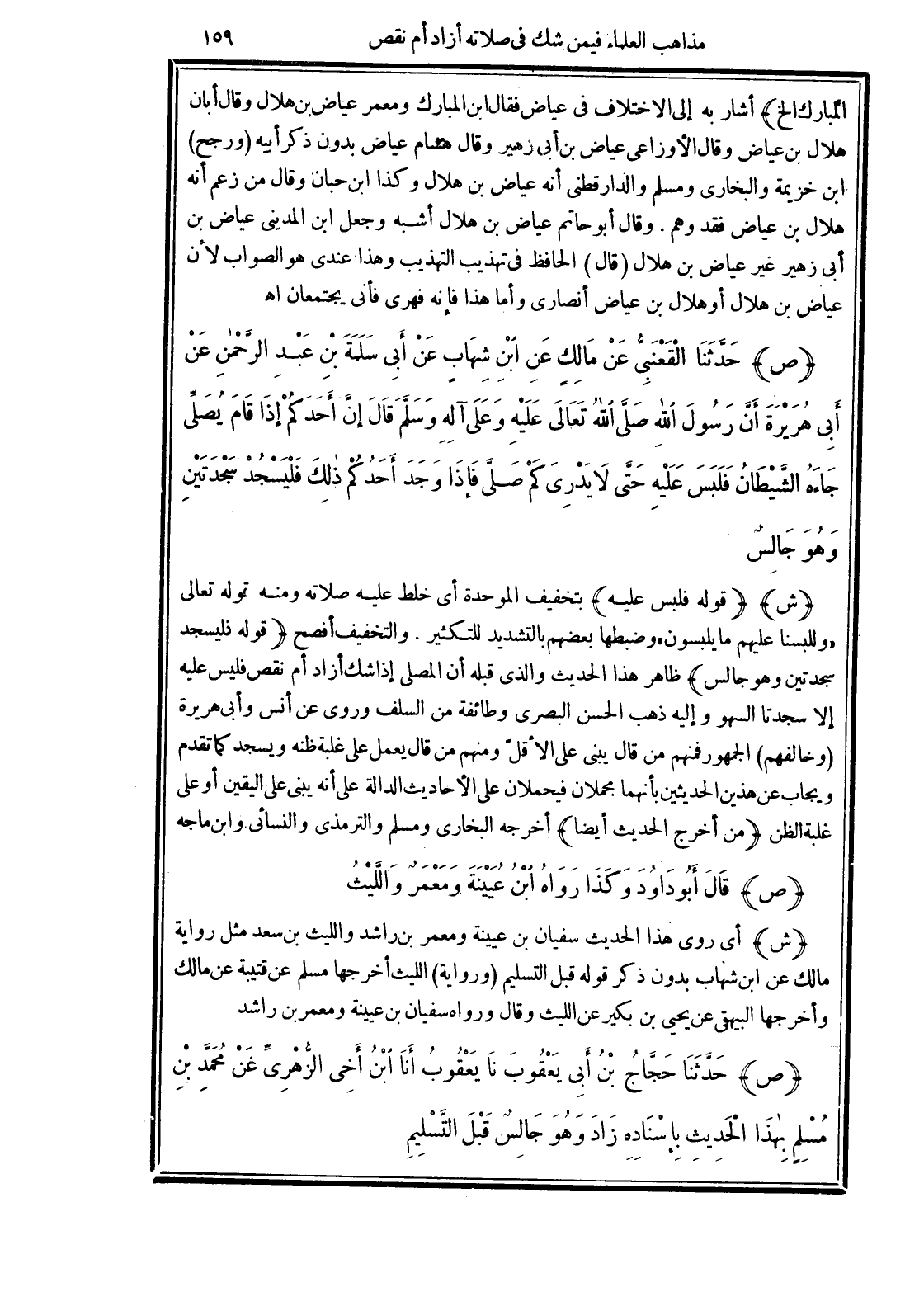 (ص) حَدَّثَنَا الْقَعْنَبِيُّ عَنْ مَالِكٍ عَنِ ابْنِ شِهَابٍ عَنْ أَبِي سَلَمَةَ بْنِ عَبْدِ الرَّحْمَنِ عَنْ أَبِي هُرَيْرَةَ أَنَّ رَسُولَ اللهِ -صَلَّى الله تَعَالَى عَلَيْهِ وَعَلَى آلِهِ وَسَلَّمَ- قَالَ "إِنَّ أَحَدَكُمْ إِذَا قَامَ يُصَلِّي جَاءَهُ الشَّيْطَانُ فَلَبَسَ عَلَيْهِ حَتَّى لاَ يَدْرِي كَمْ صَلَّى فَإِذَا وَجَدَ أَحَدُكُمْ ذَلِكَ فَلْيَسْجُدْ سَجْدَتَيْنِ وَهُوَ جَالِسٌ".