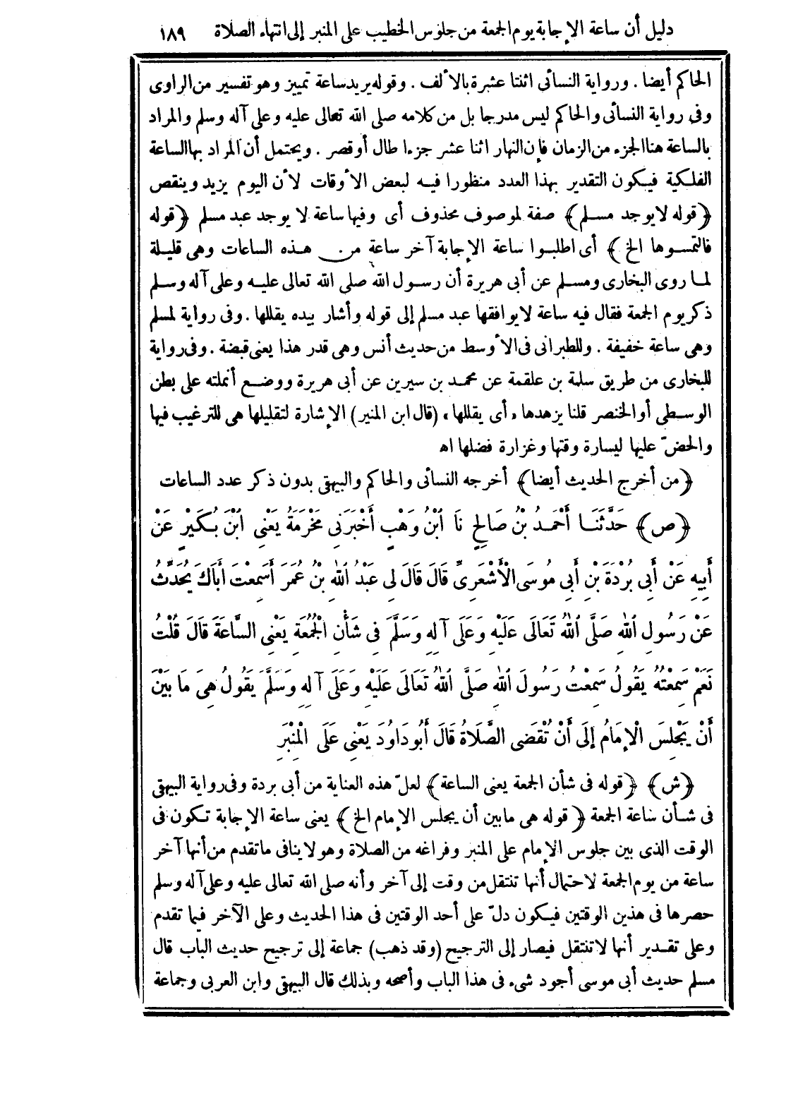 (ش) (قوله في شأن الجمعة يعني الساعة) لعلّ هذه العناية من أَبي بردة وفي رواية البيهقي في شأن ساعة الجمعة