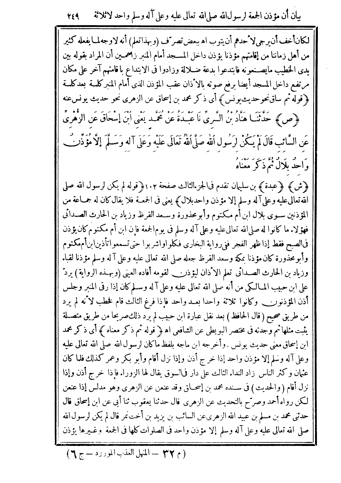 (ص) حَدَّثَنَا هَنَّادُ بْنُ السَّرِيِّ نَا عَبْدَةُ عَنْ مُحَمَّدٍ -يَعْنِي ابْنَ إِسْحَاقَ- عَنِ الزُّهْرِيِّ عَنِ السَّائِبِ قَالَ لَمْ يَكُنْ لِرَسُولِ اللَّهِ -صَلَّى الله تَعَالَى عَلَيْهِ وَعَلَى آلِهِ وَسَلَّمَ- إِلاَّ مُؤَذِّنٌ وَاحِدٌ بِلاَلٌ ثُمَّ ذَكَرَ مَعْنَاهُ.