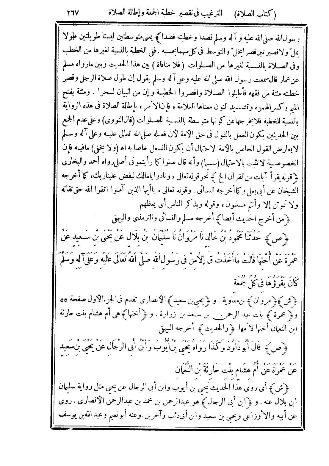 (ش) (مروان) بن معاوية. و (يحيى بن سعيد) الأنصاري تقدم في الجزء الأول صفحة 55 و (عمرة) بنت عبد الرحمن بن سعد بن زرارة. و (أختها) هي أم هشام بنت حارثة ابن النعمان أختهالأمها