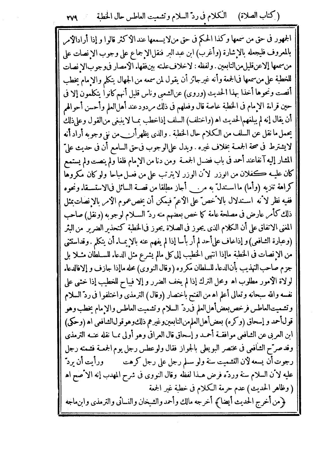 (وقال) الترمذي واختلفوا في ردّ السلام وتشميت العاطس فرخص بعض أهل العلم في ردّ السلام وتشميت العاطس والإمام يخطب وهو قول أحمد وإسحاق (وكره) بعض أهل العلم من التابعين وغيرهم ذلك وهو قول الشافعي اهـ