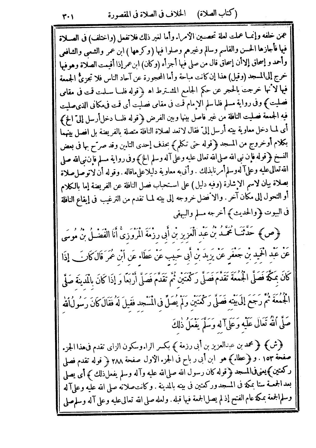 (ص) حَدَّثَنَا مُحَمَّدُ بْنُ عَبْدِ الْعَزِيزِ بْنِ أَبِي رِزْمَةَ الْمَرْوَزِيُّ أَنَا الْفَضْلُ بْنُ مُوسَى عَنْ عَبْدِ الْحَمِيدِ بْنِ جَعْفَرٍ عَنْ يَزِيدَ بْنِ أَبِي حَبِيبٍ عَنْ عَطَاءٍ عَنِ ابْنِ عُمَرَ قَالَ كَانَ إِذَا كَانَ بِمَكَّةَ فَصَلَّى الْجُمُعَةَ تَقَدَّمَ فَصَلَّى رَكْعَتَيْنِ ثُمَّ تَقَدَّمَ فَصَلَّى أَرْبَعًا وَإِذَا كَانَ بِالْمَدِينَةِ صَلَّى الْجُمُعَةَ ثُمَّ رَجَعَ إِلَى بَيْتِهِ فَصَلَّى رَكْعَتَيْنِ وَلَمْ يُصَلِّ فِى الْمَسْجِدِ فَقِيلَ لَهُ فَقَالَ كَانَ رَسُولُ اللَّهِ -صَلَّى الله تَعَالَى عَلَيْهِ وَعَلَى آلِهِ وَسَلَّمَ- يَفْعَلُ ذَلِكَ.