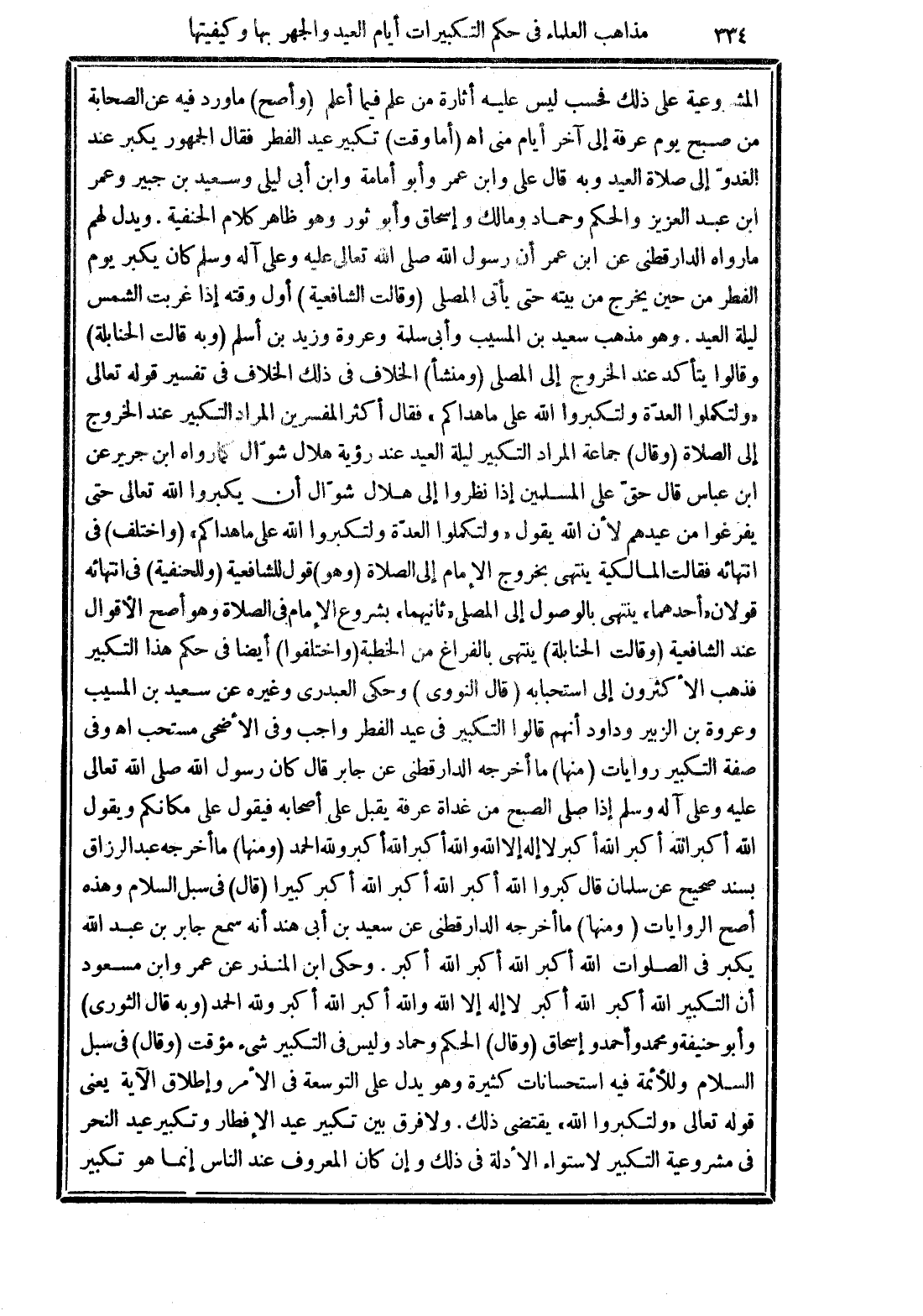 (قال النووي) وحكى العبدري وغيره عن سعيد بن المسيب وعروة بن الزبير وداود أنهم قالوا التكبير في عيد الفطر واجب وفي الأضحى مستحب اهـ
